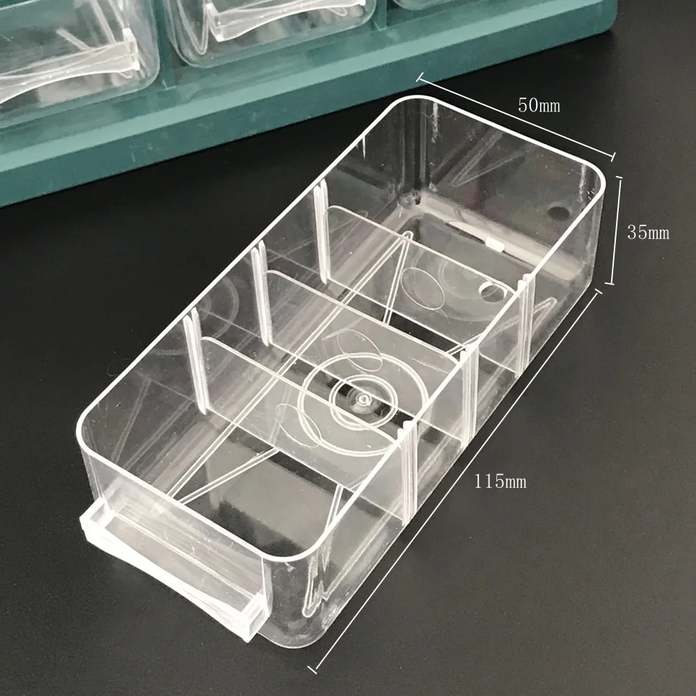 4. Небольшой ящик Ящика имеет прозрачный дизайн, который может быстро найти нужные детали, и имеет встроенный тормоз для предотвращения падения деталей.