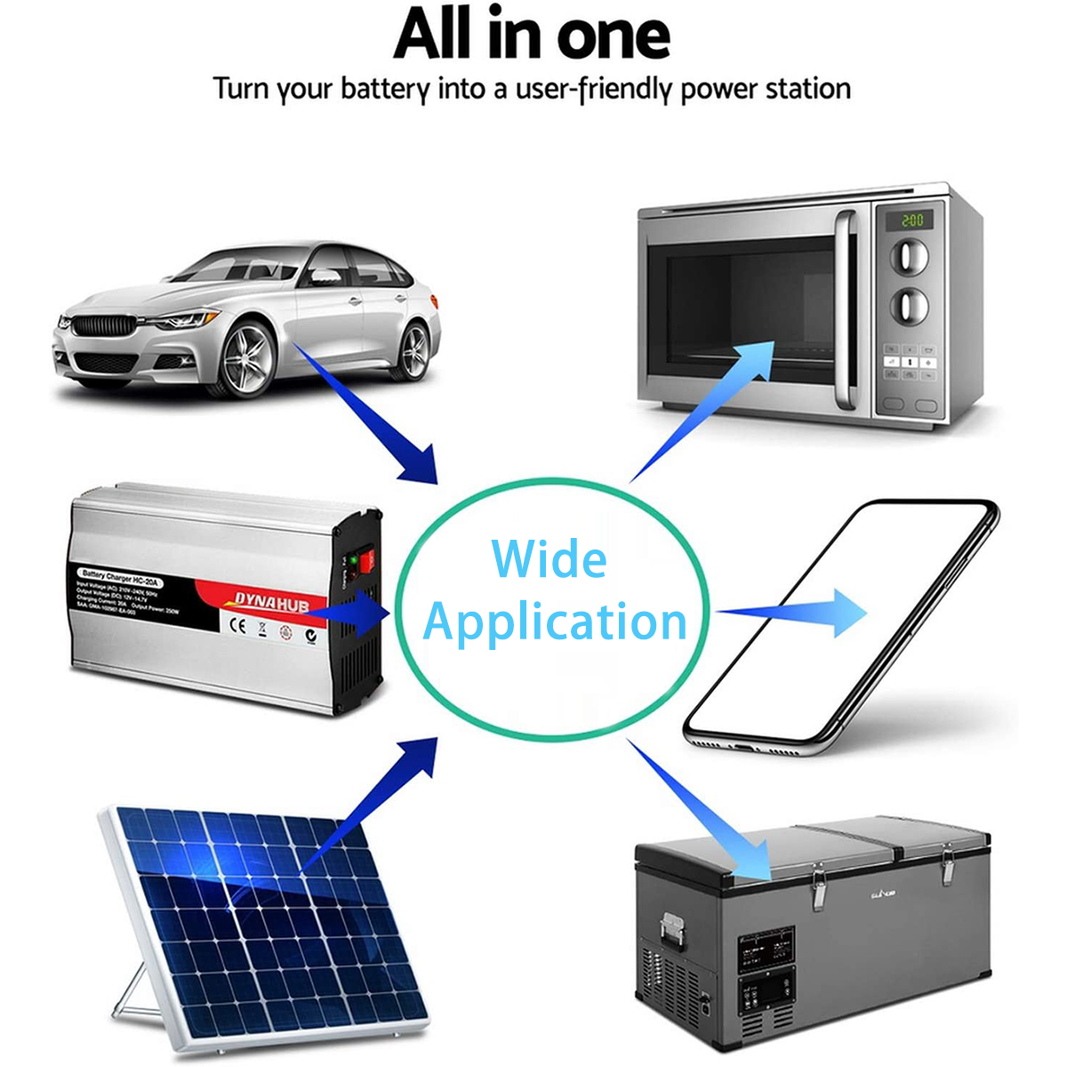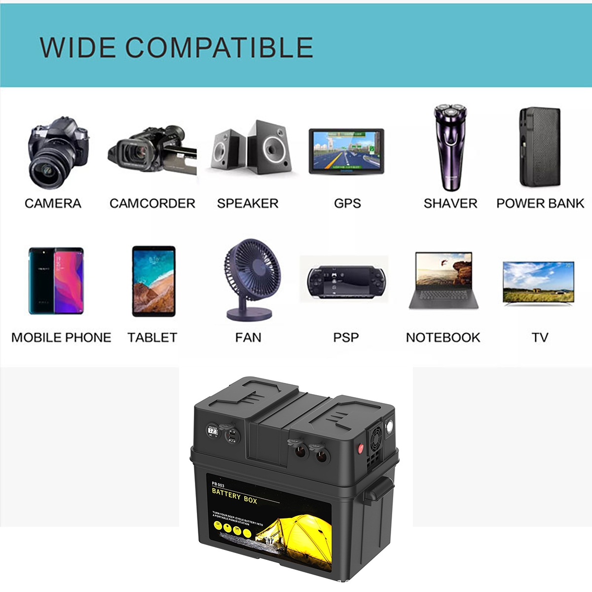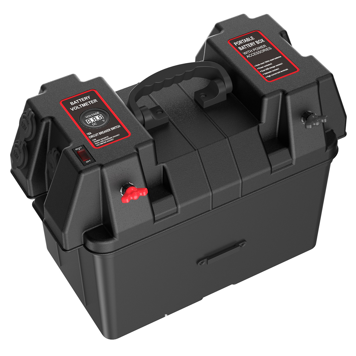 DURABLE CONSTRUCTION - This smart battery box is made of impact-resistant PP housing, which enables the battery box to withstand shock, impact as well as battery acid, gas, oil, dust and corrosion. This battery box is ideal for small boats, solar panels, electronic devices, camp lights and fridges. As long as the size is appropriate, it is suitable for all 12V batteries.