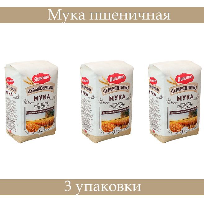 Яшкино, мука пшеничная цельнозерновая, 1 кг, 3 штуки
