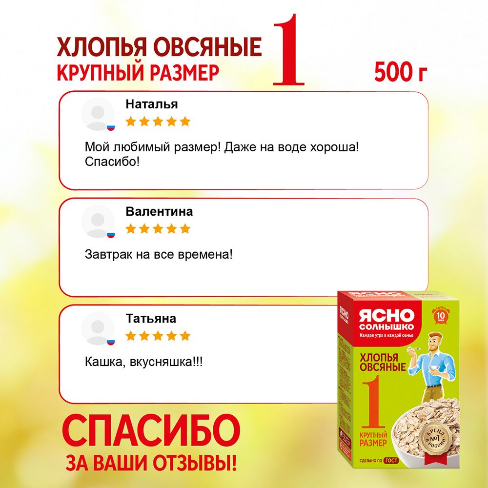 Ясно Солнышко Хлопья овсяные №1, 500 г