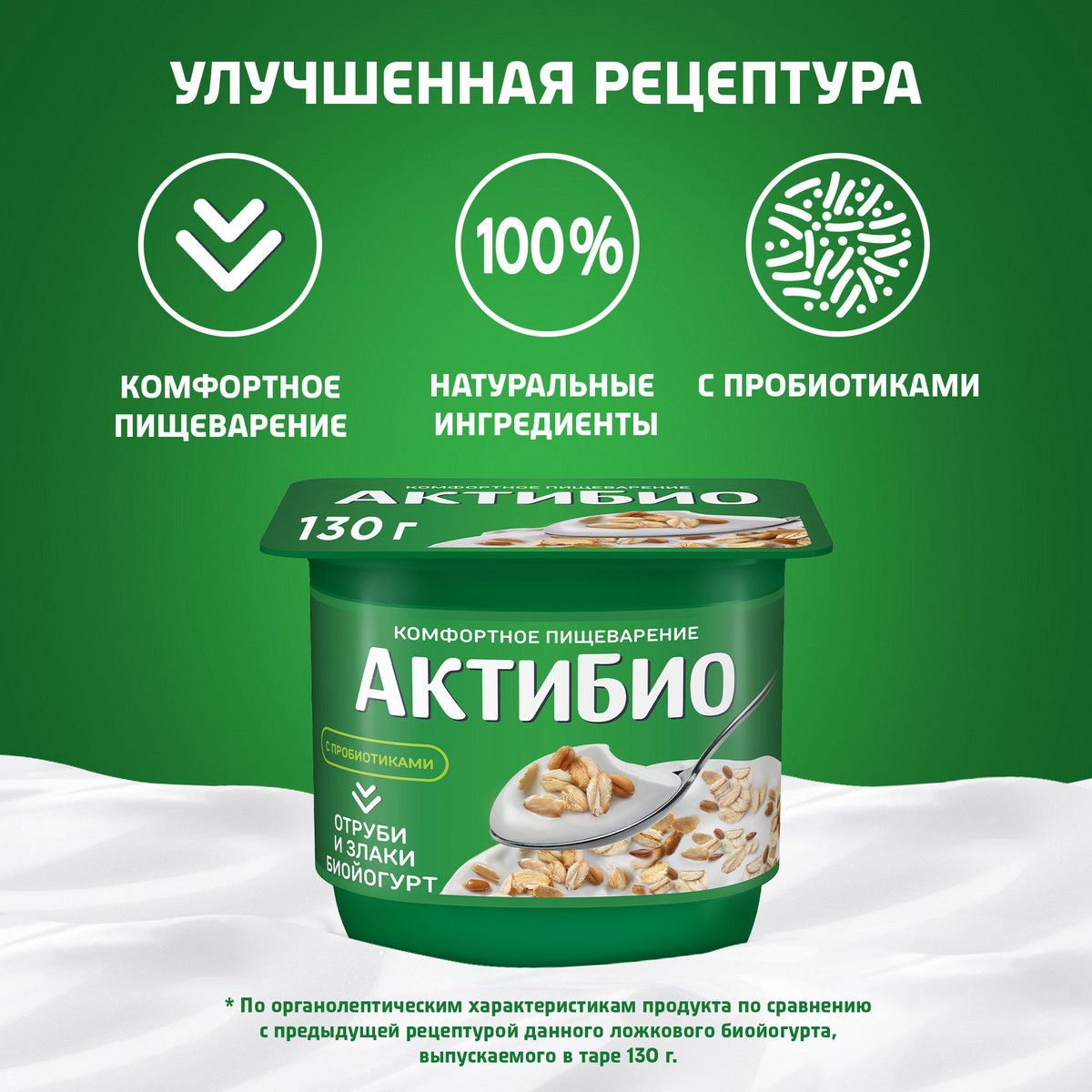 Йогурт АктиБио с отрубями и злаками, 2%, 130 г