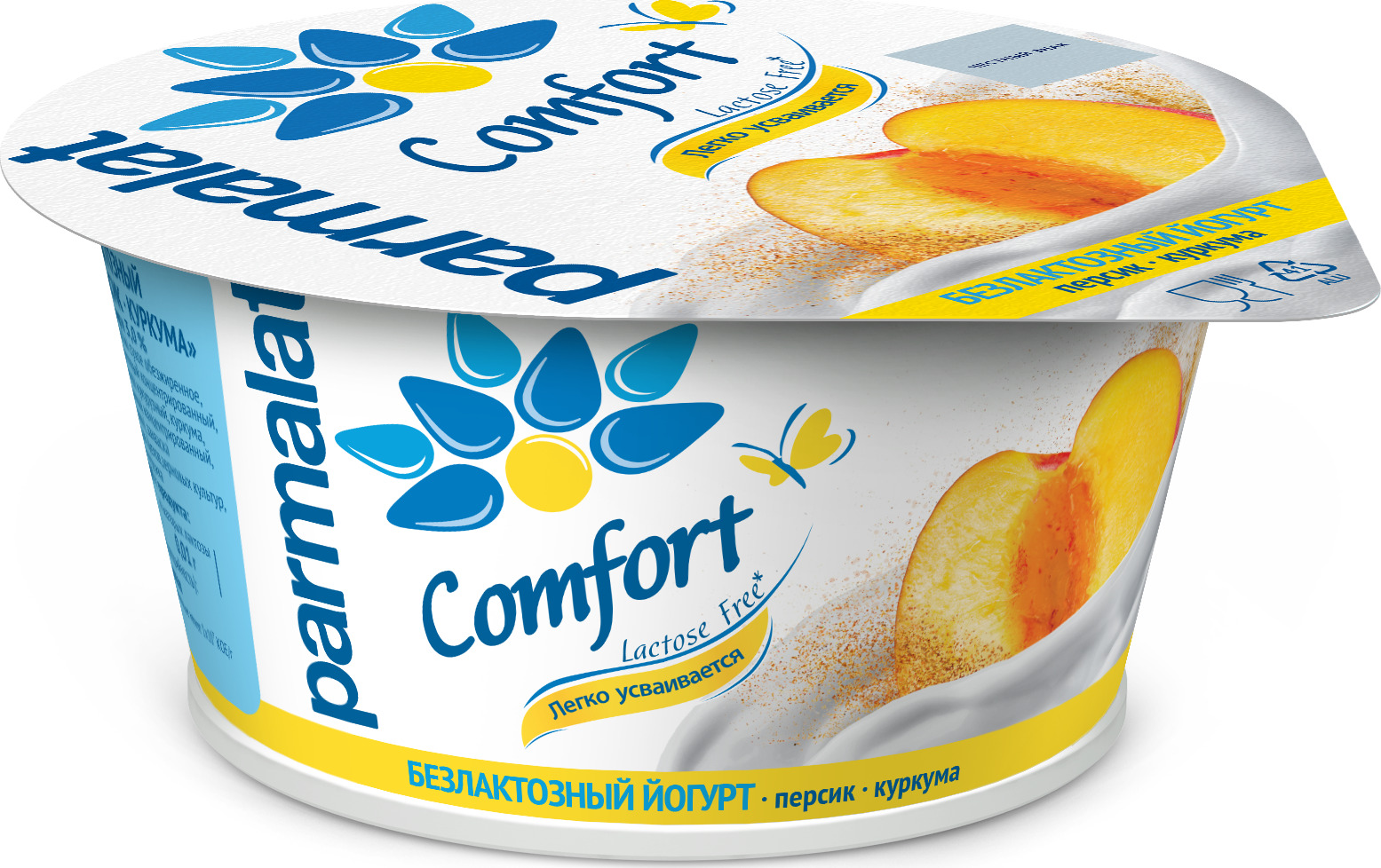 Йогурт густой Comfort Parmalat безлактозный персик-куркума 3%, 130 г
