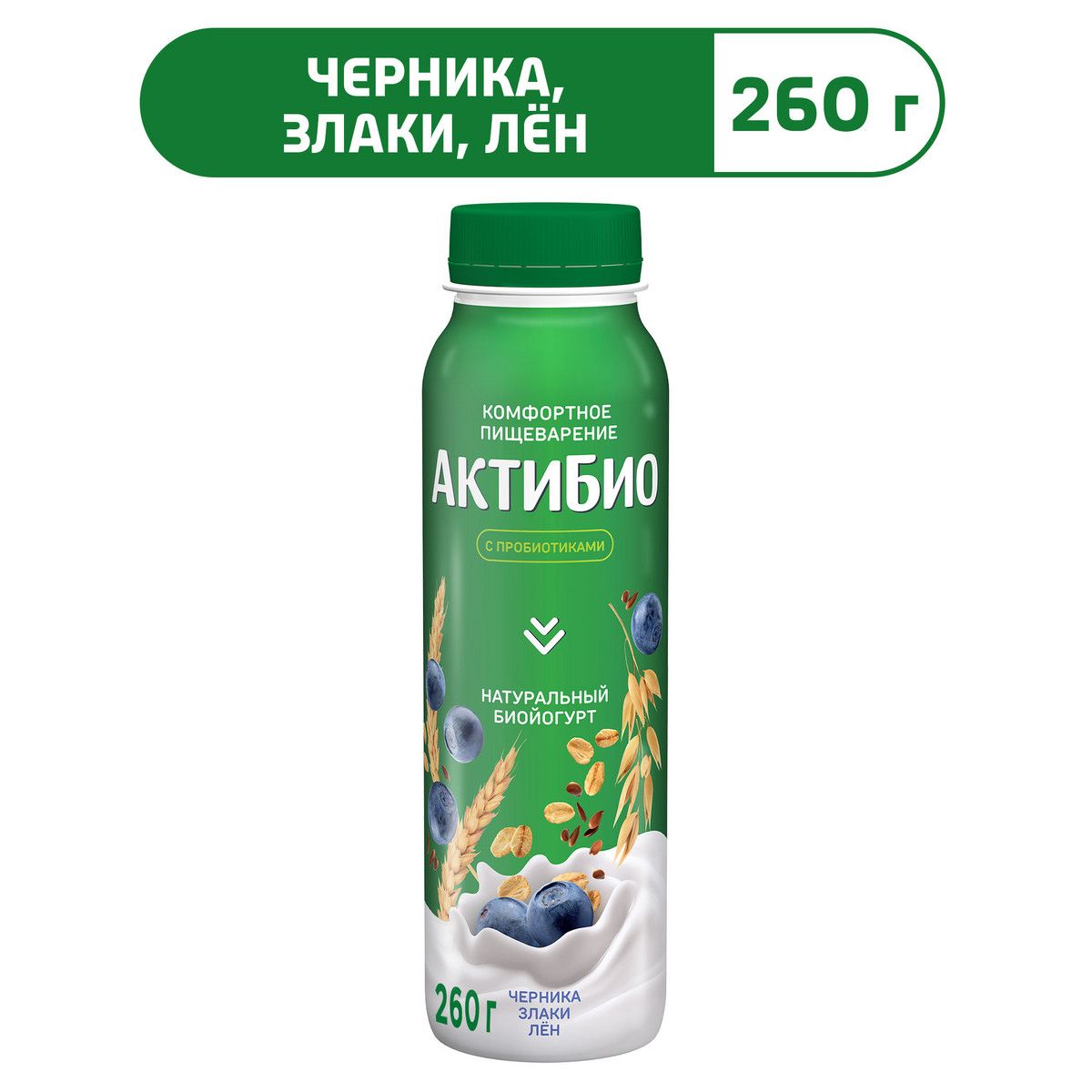 Йогурт питьевой АктиБио с черникой, злаками и семенами льна, 1,6%, 260 г