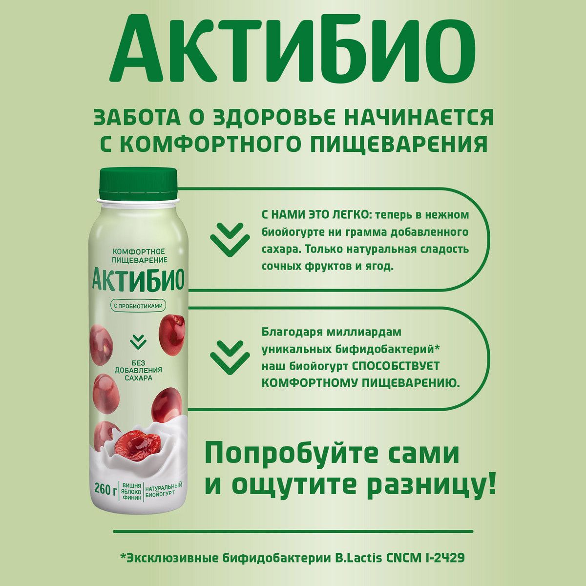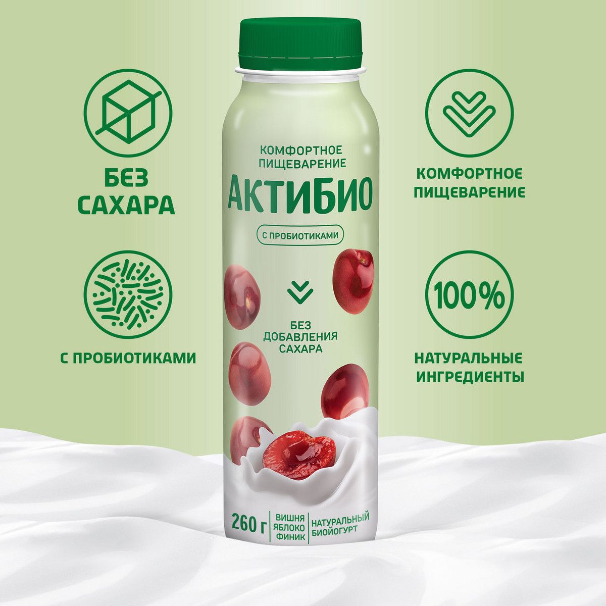 Йогурт питьевой АктиБио с яблоком, вишней и фиником, без сахара, 1,5%, 260 г