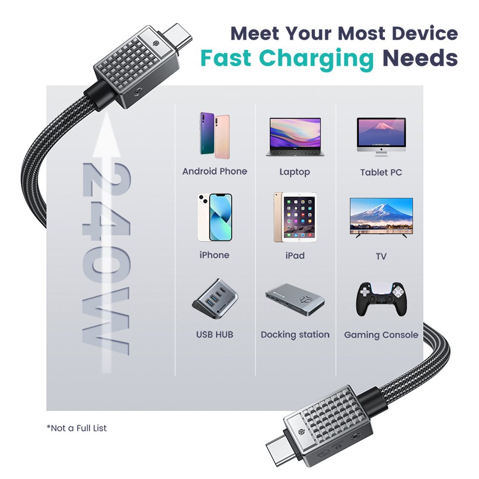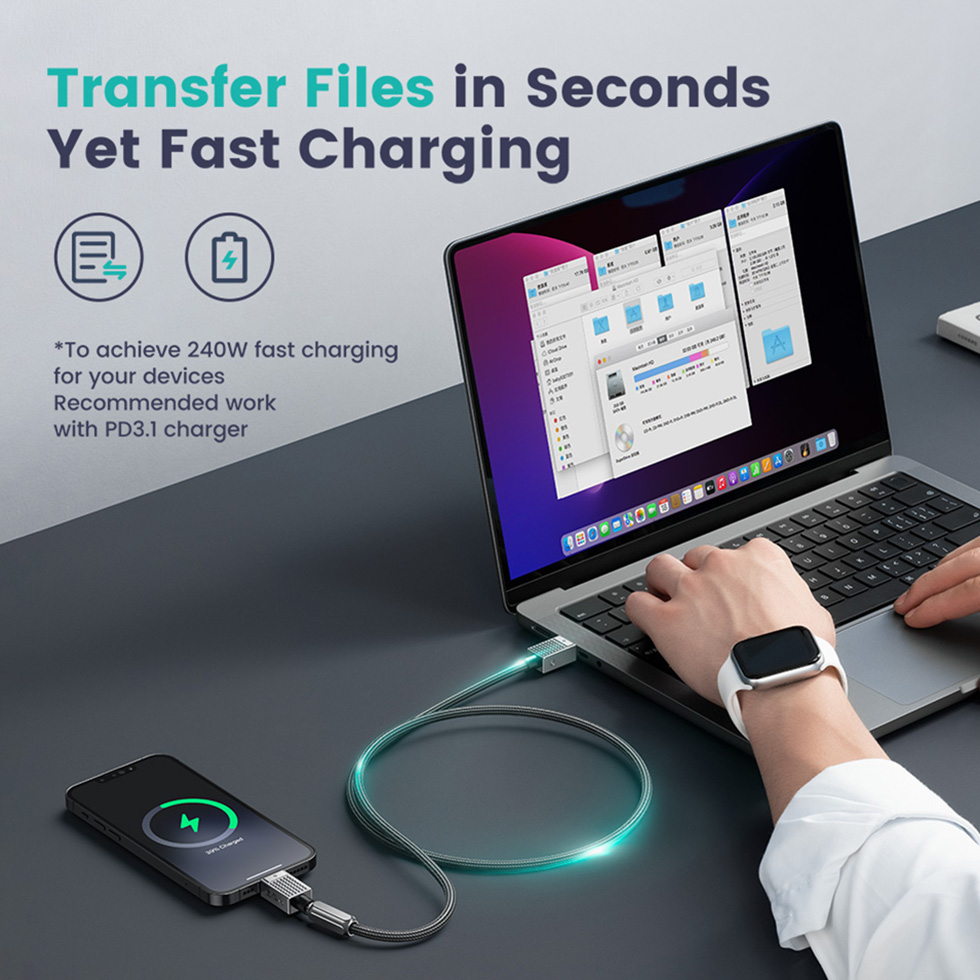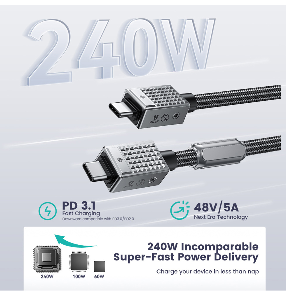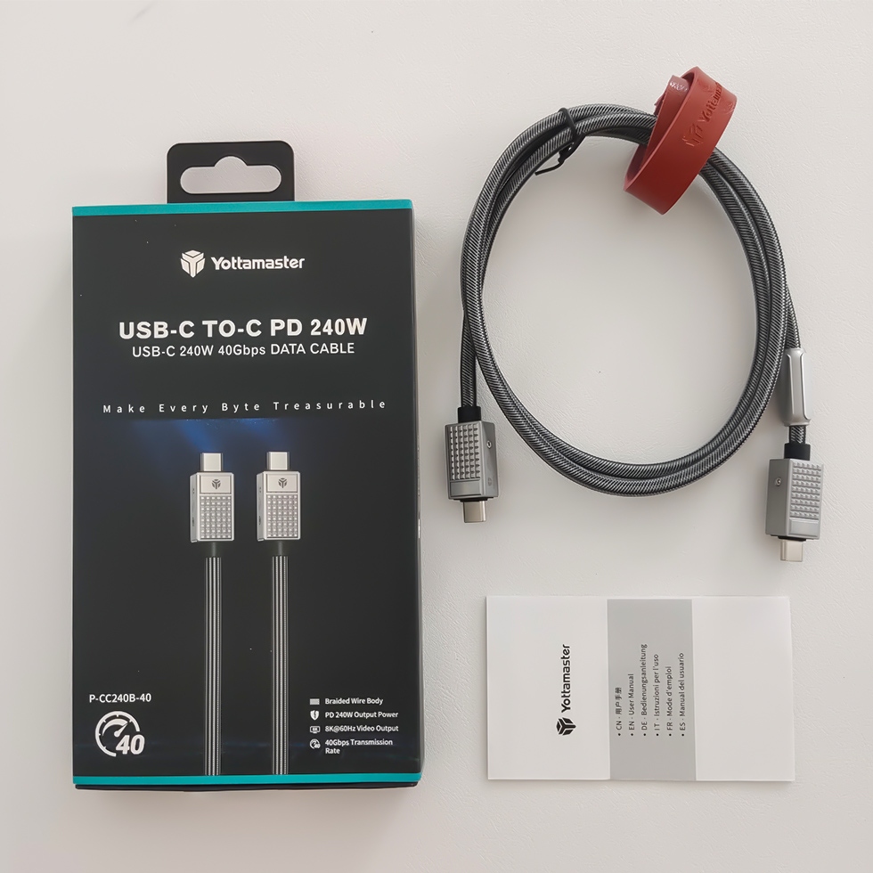 Yottamaster PD 240 Вт Кабель USB Тип C Разветвитель 40 Гбит/с Высокоскоростная линия зарядки 4K 8K @ 60 Гц Видео 5A Плетеный провод для передачи данных из цинкового сплава