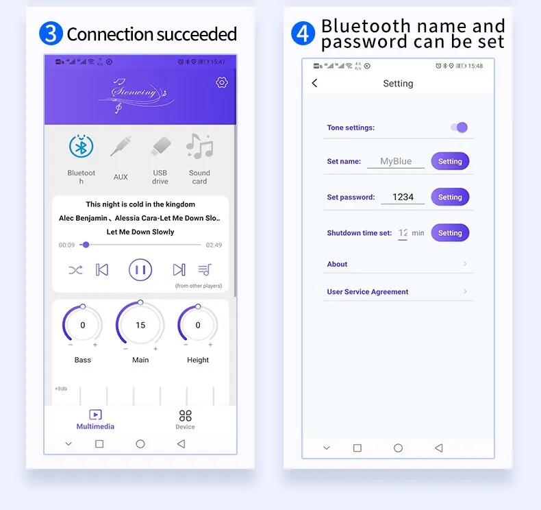 7. Приложение поддерживает Android и IOS. Новое обновление Bluetooth-совместимой системы, Установка пароля подключения, выключение/включение звукового сигнала.