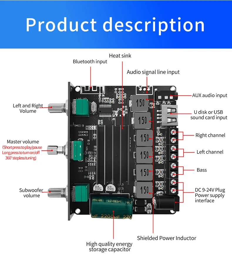Product name: 2.1 channel bluetooth audio power amplifier module