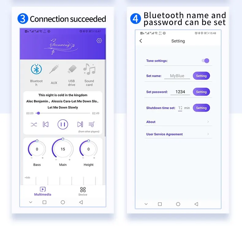 • Поддержка высоких и низких тона:Отрегулируйте тон вашей музыки с помощью высоких и низких настроек для более индивидуального прослушивания.