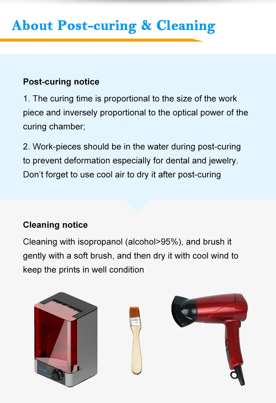 3. Перед взлетом с платформы рекомендуется очищать изделия из стоматологической смолы, чтобы избежать деформации.