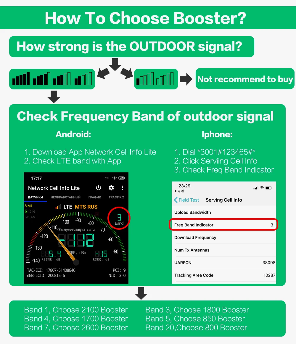 Выберите подходящий усилитель сигнала мобильного телефона в зависимости от значения диапазона. Если у вас есть вопросы, свяжитесь со мной.