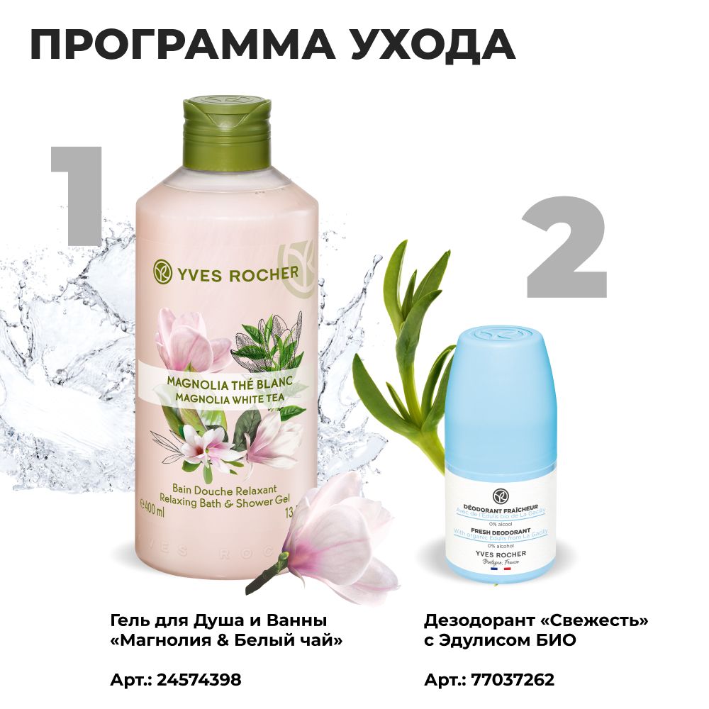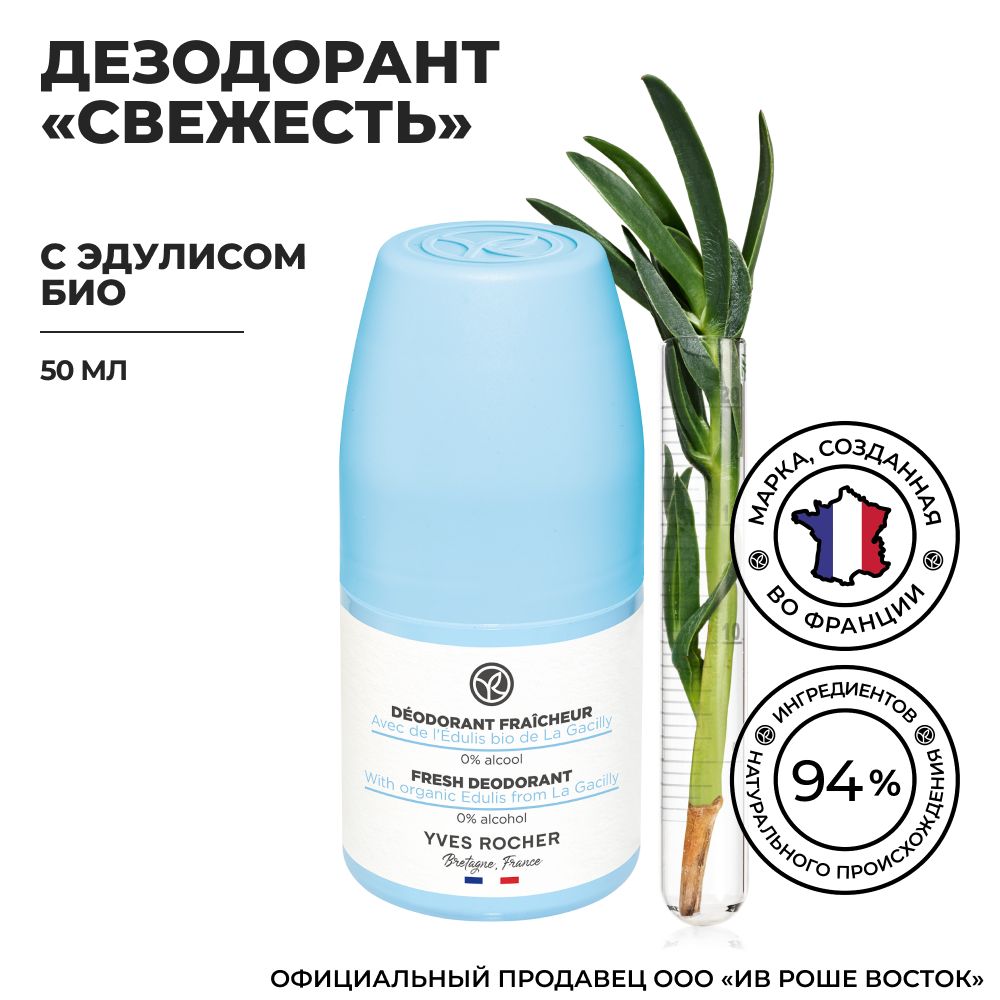 Yves Rocher / Ив Роше / Шариковый Дезодорант 48ч "Свежесть" с Эдулисом БИО, 50 мл