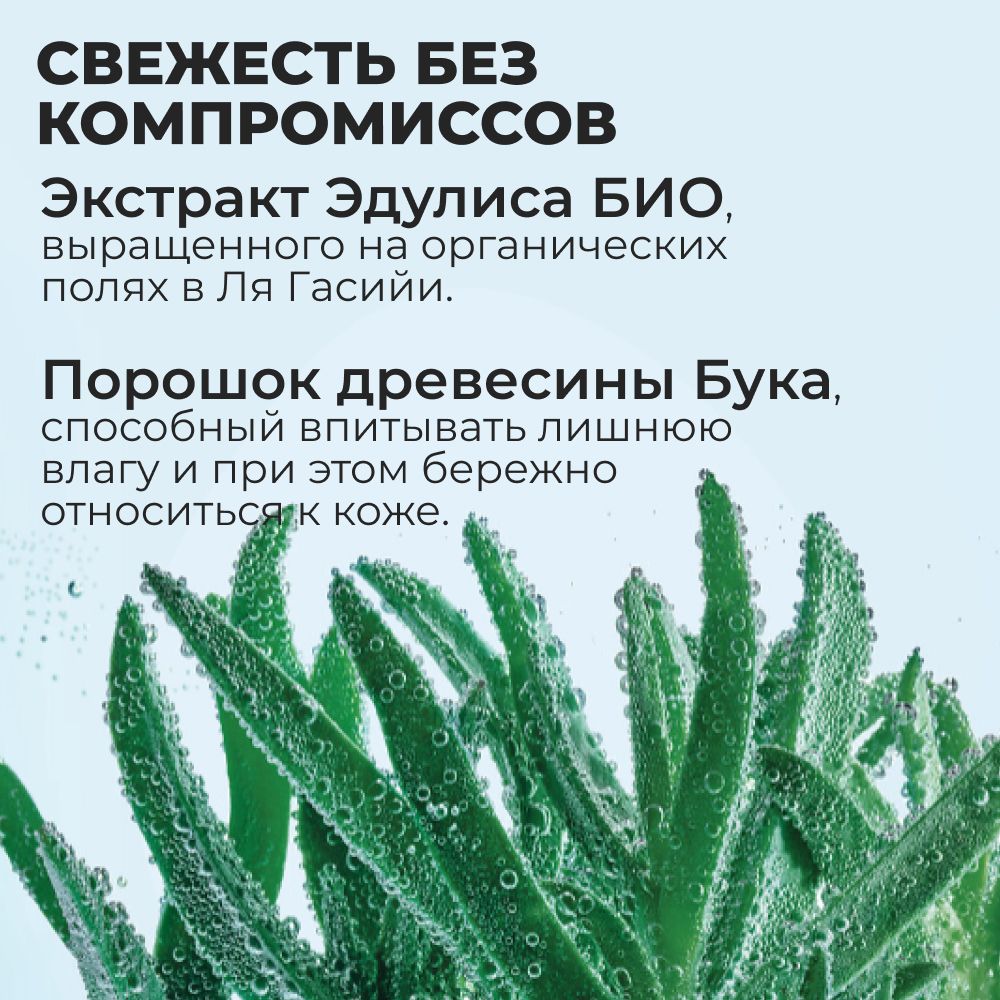Описание: Обогащенный экстрактом Эдулиса БИО, выращенного на наших органических полях в Ля Гасийи, дезодорант будет защищать вас от запахов благодаря своему легкому аромату. Для оптимальной эффективности наши эксперты Растительной Косметики выбрали порошок древесины Бука: он способен впитывать лишнюю влагу и при этом бережно относиться к коже.