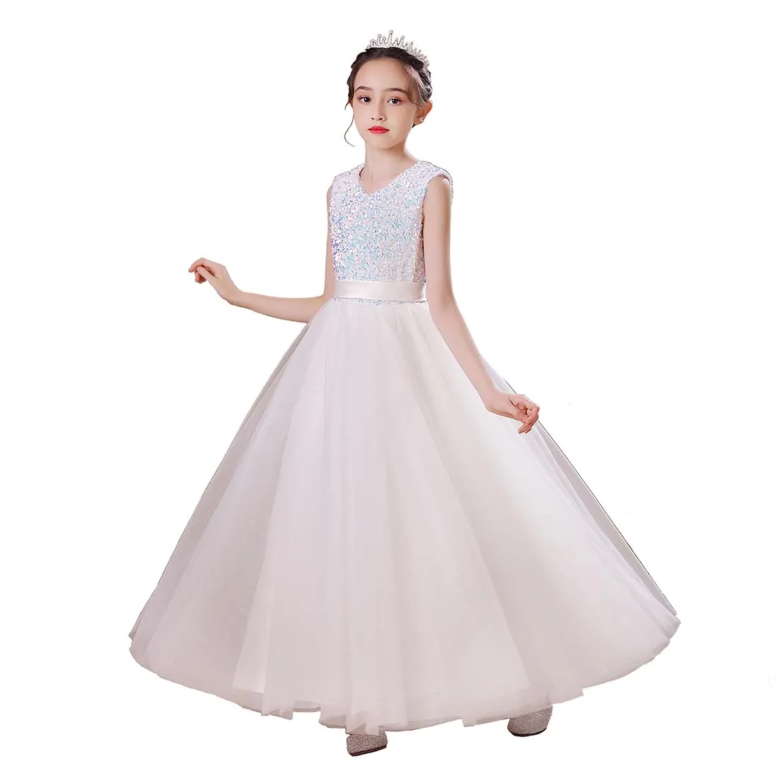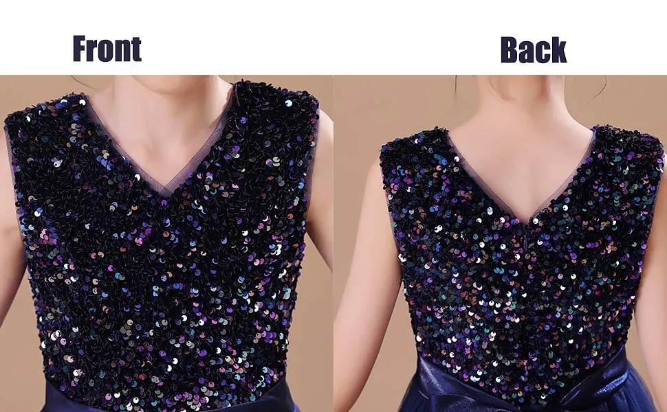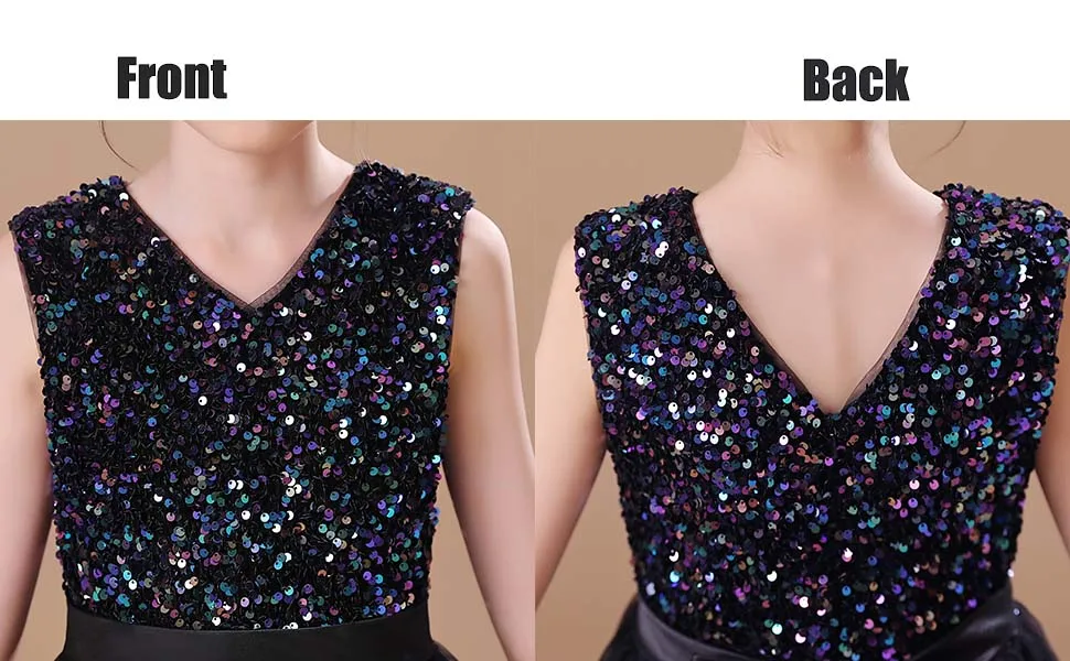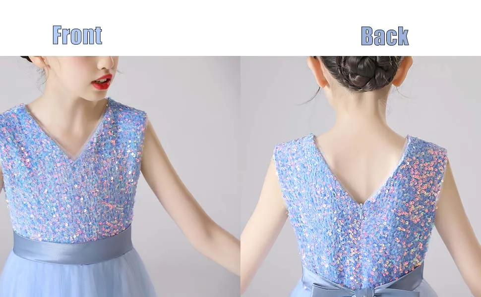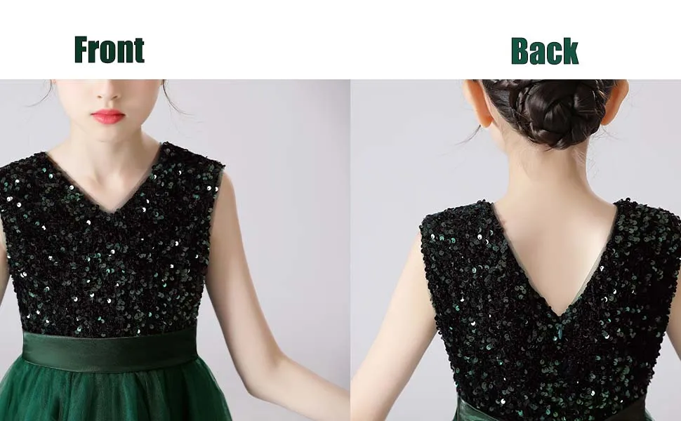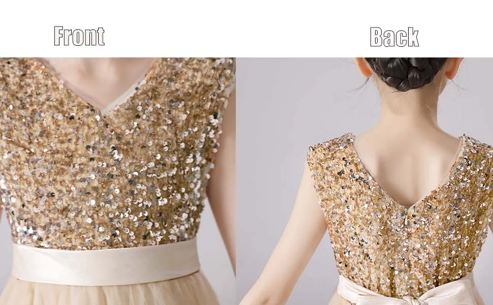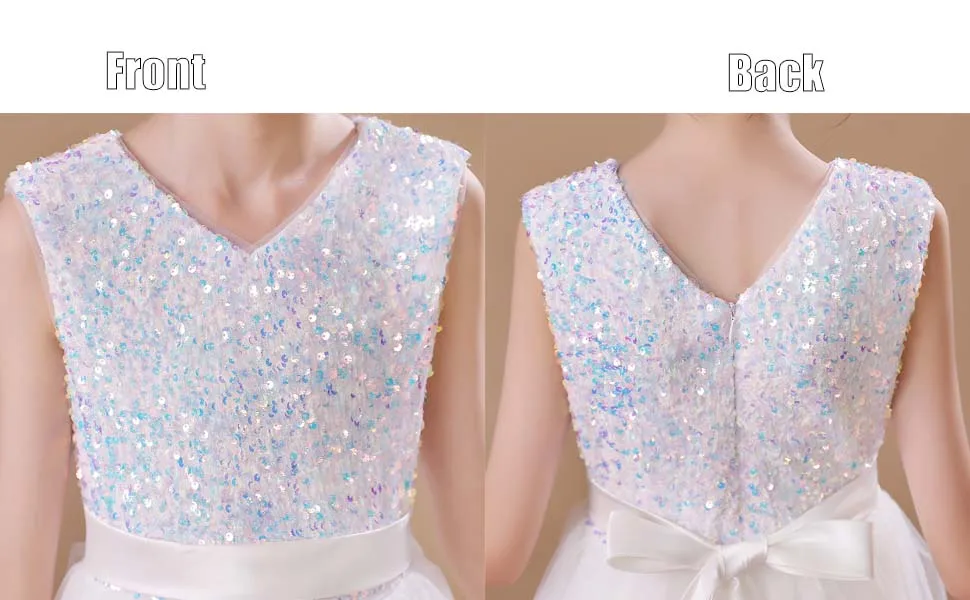 👗ЭЛЕГАНТНЫЙ ДИЗАЙН С-образной ШЕЕЙ: Это новейший дизайн, простой, но элегантный. Без рукавов, V-образный вырез, великолепные пайетки, завязанный пояс, потайная застежка-молния сзади, пояс завязан сзади. Он состоит из семи слоев, четырех слоев тюля, двух слоев подкладки под ним и одного слоя нижних юбок. Вы можете носить его прямо, когда тепло. В холодную погоду вы можете одеть малыша в леггинсы или чулки с мокасинами или сапогами.