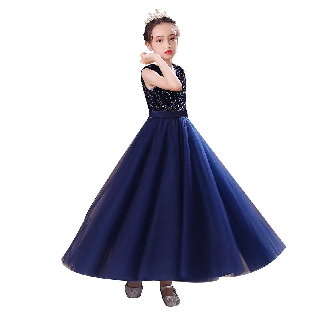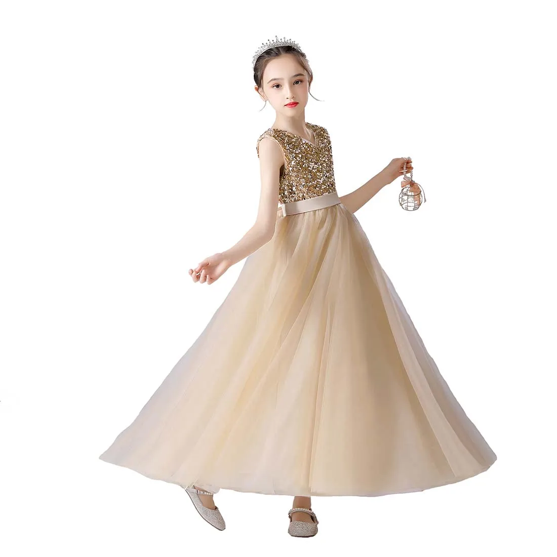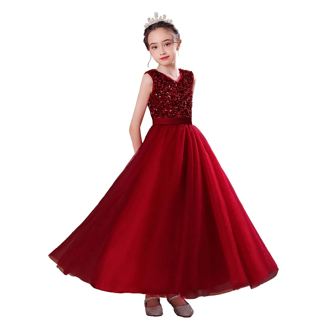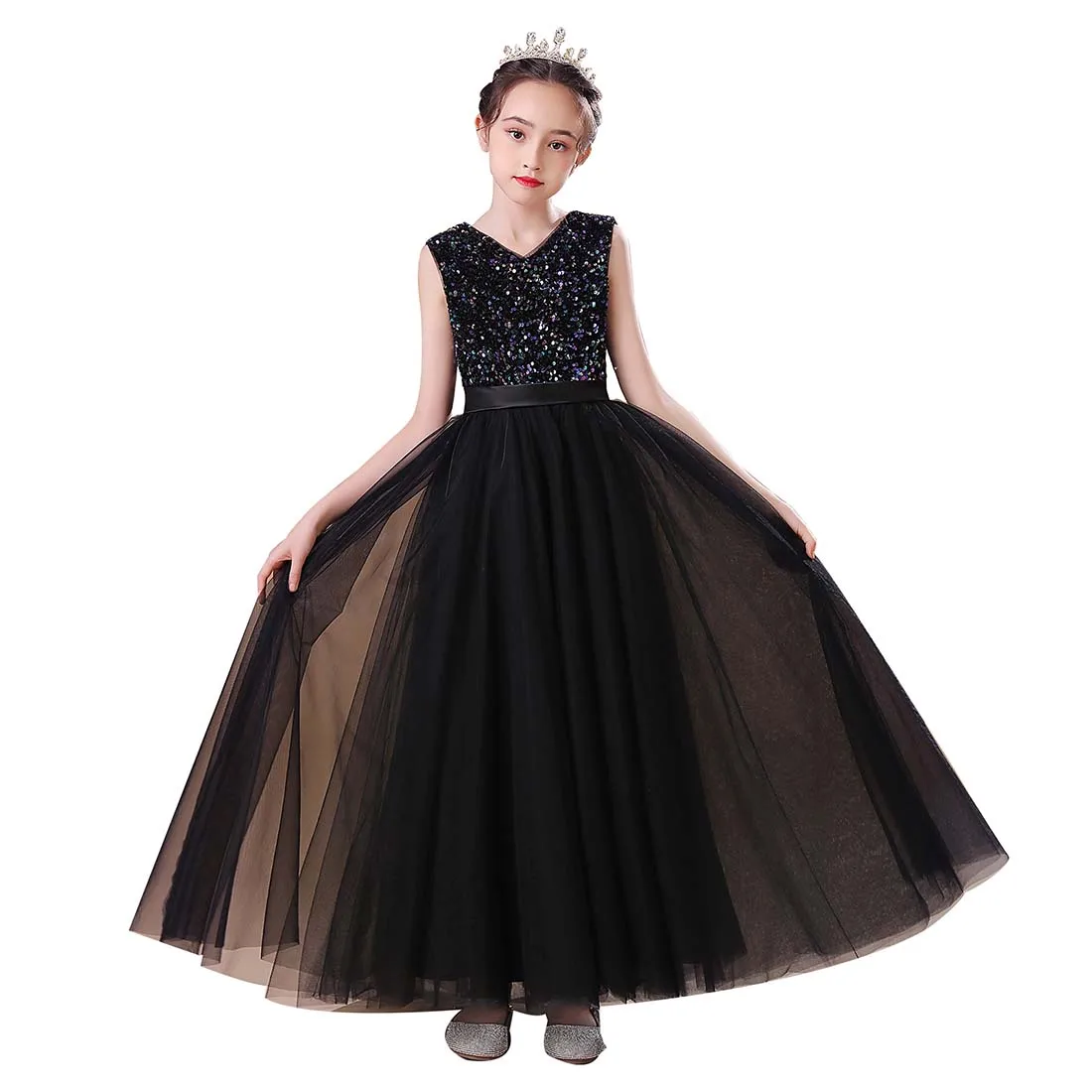 👗ЭЛЕГАНТНЫЙ ДИЗАЙН С-образной ШЕЕЙ: Это новейший дизайн, простой, но элегантный. Без рукавов, V-образный вырез, великолепные пайетки, завязанный пояс, потайная застежка-молния сзади, пояс завязан сзади. Он состоит из семи слоев, четырех слоев тюля, двух слоев подкладки под ним и одного слоя нижних юбок. Вы можете носить его прямо, когда тепло. В холодную погоду вы можете одеть малыша в леггинсы или чулки с мокасинами или сапогами.