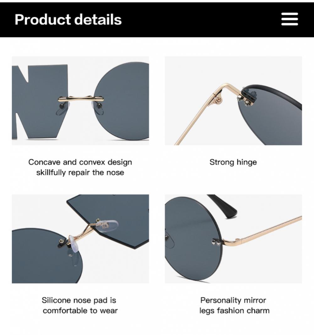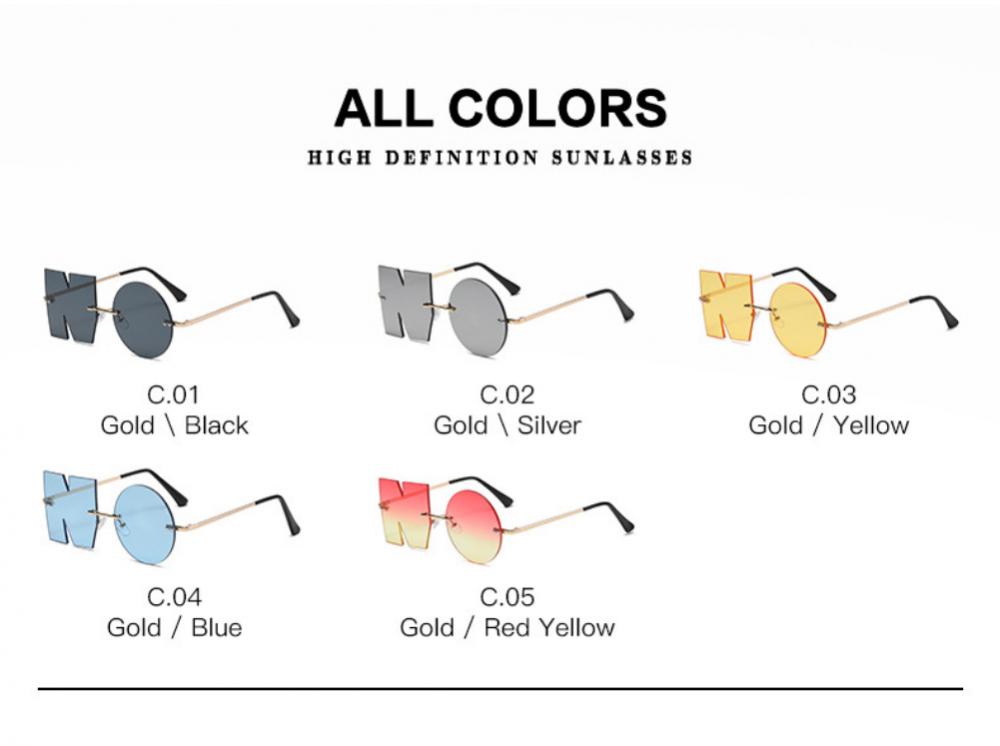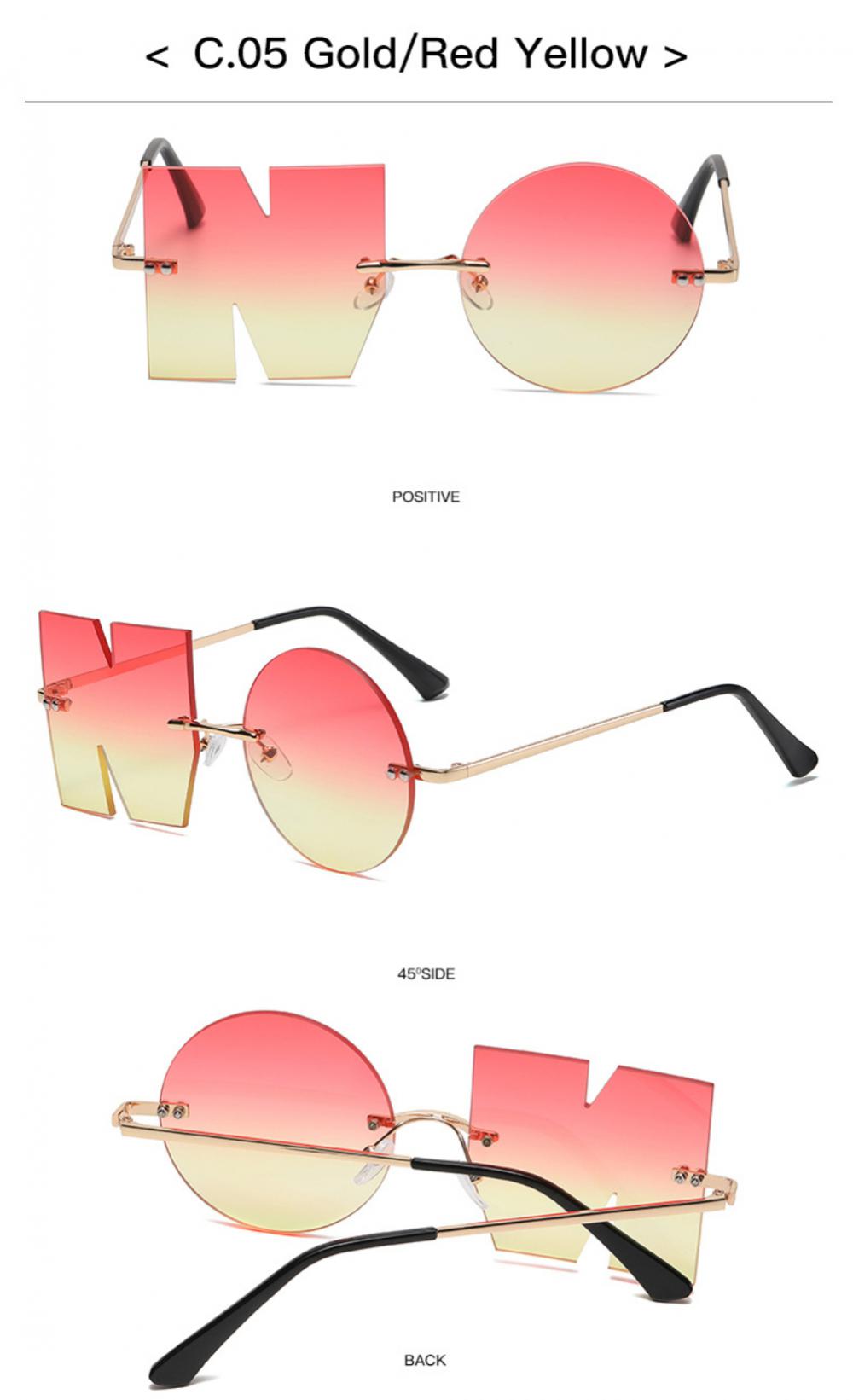 Забавные Модные индивидуальные солнцезащитные очки без оправы с надписью «NO вечерние», очки неправильной формы с защитой UV400, детский подарок