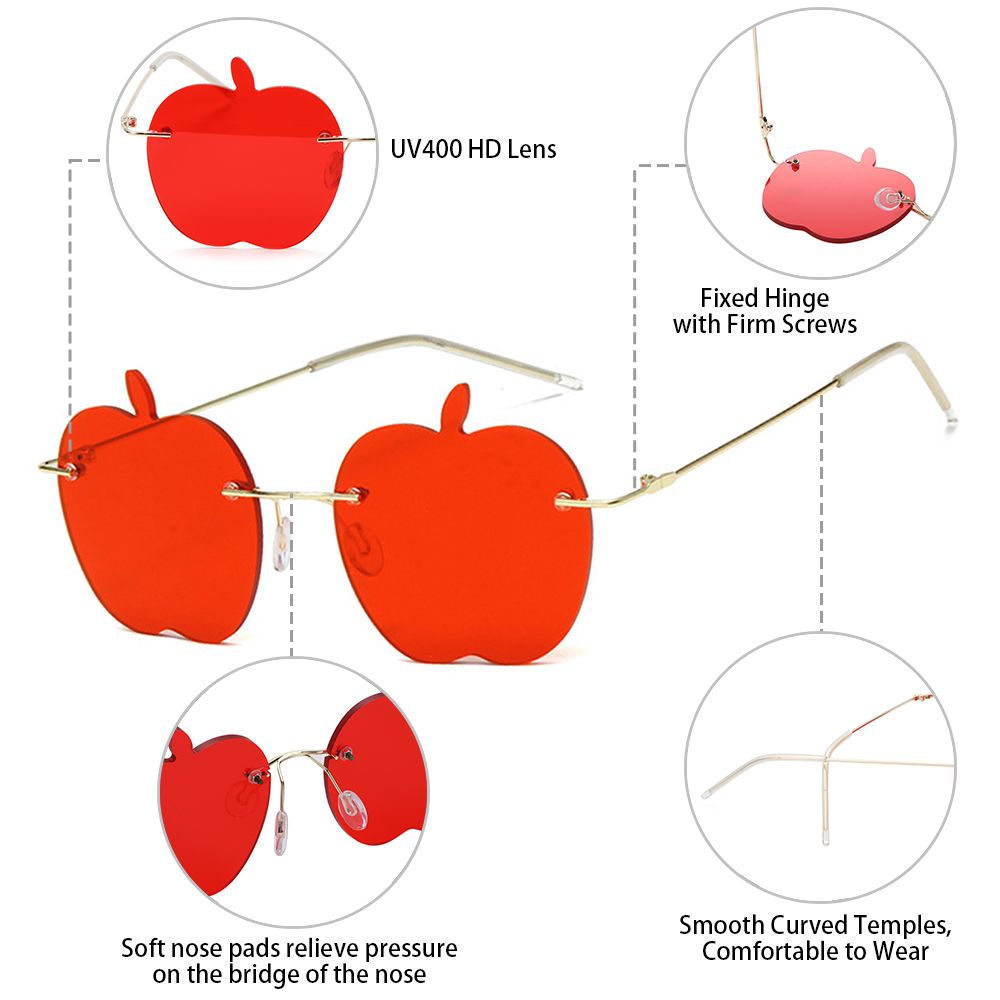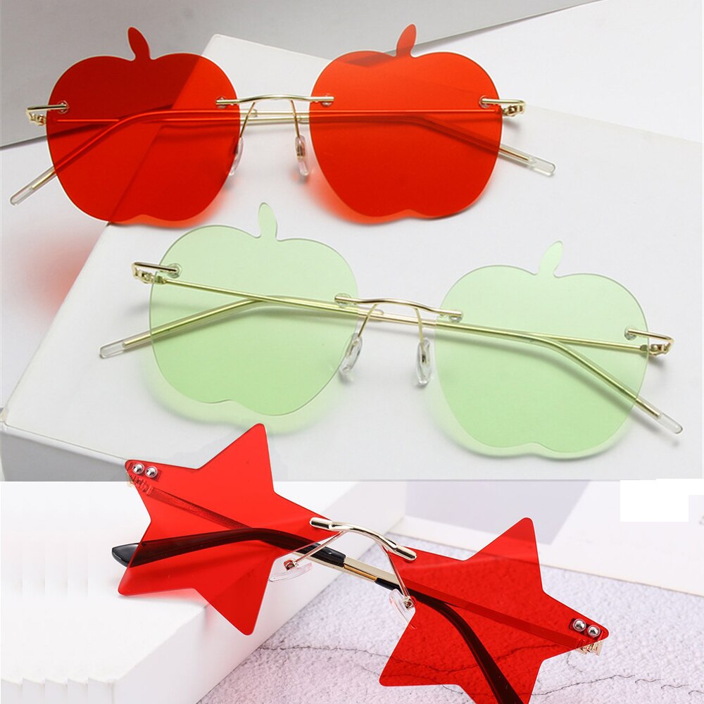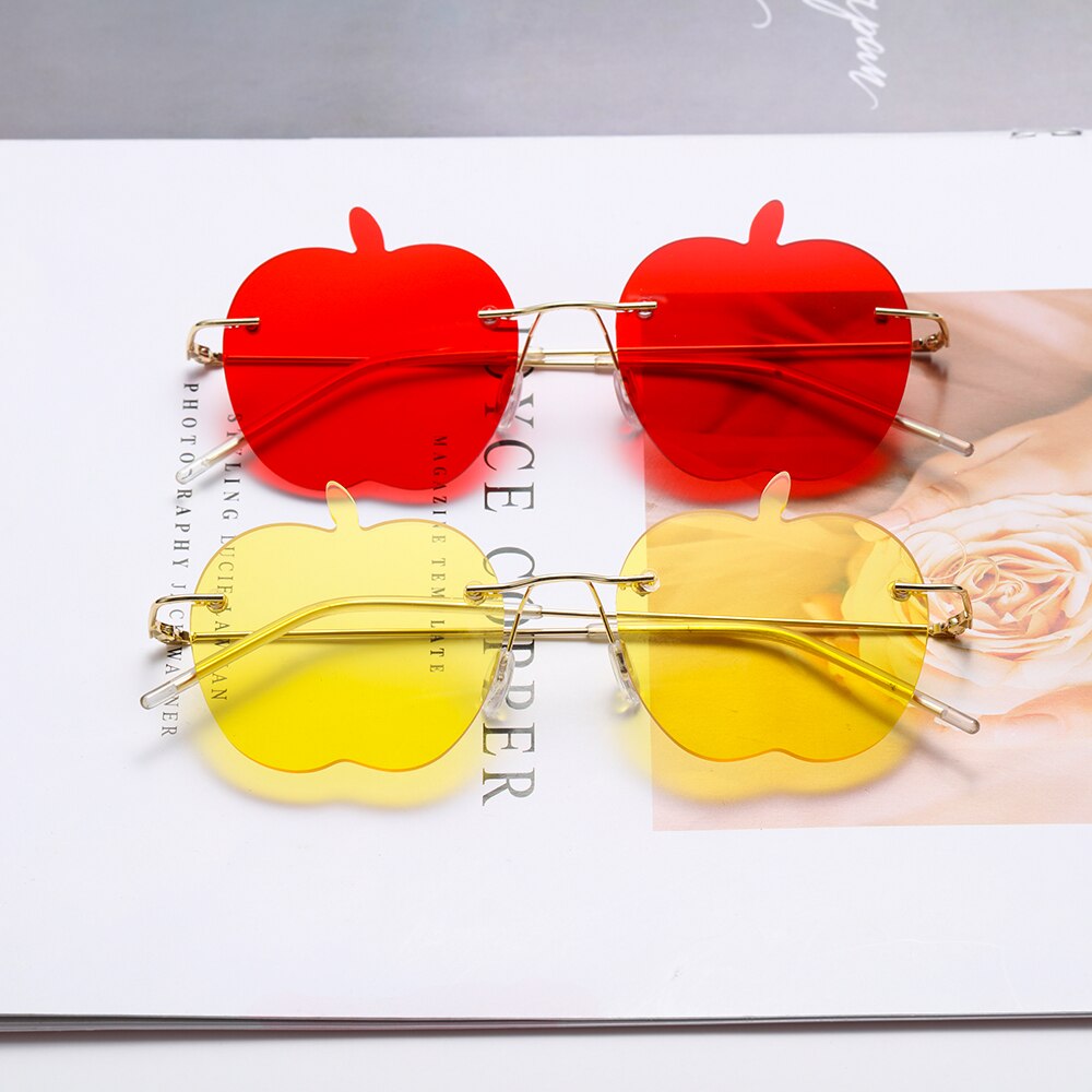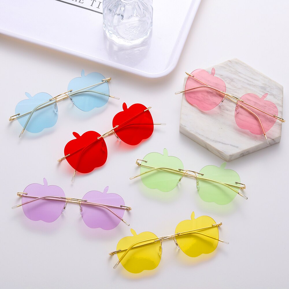 Забавные очки, искусственное украшение, очки, солнцезащитные очки без оправы, модные милые Солнцезащитные очки без оправы в форме яблока