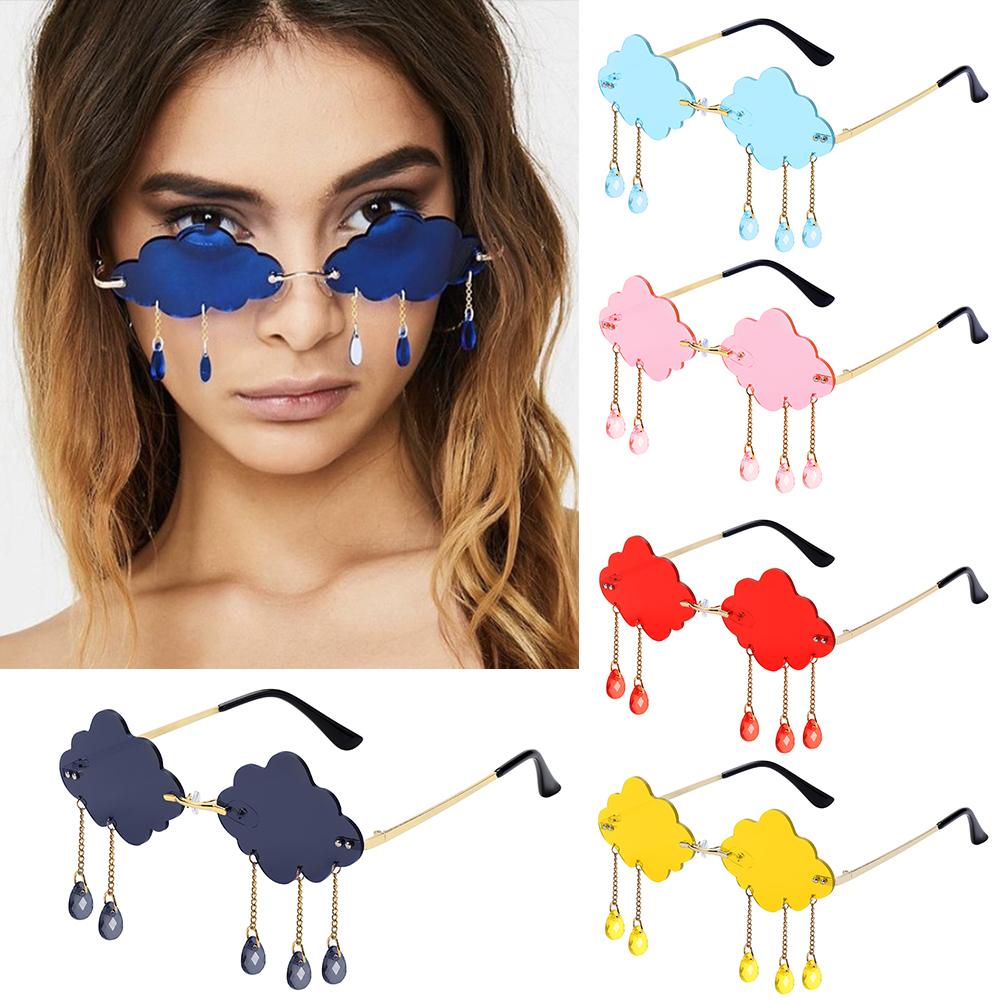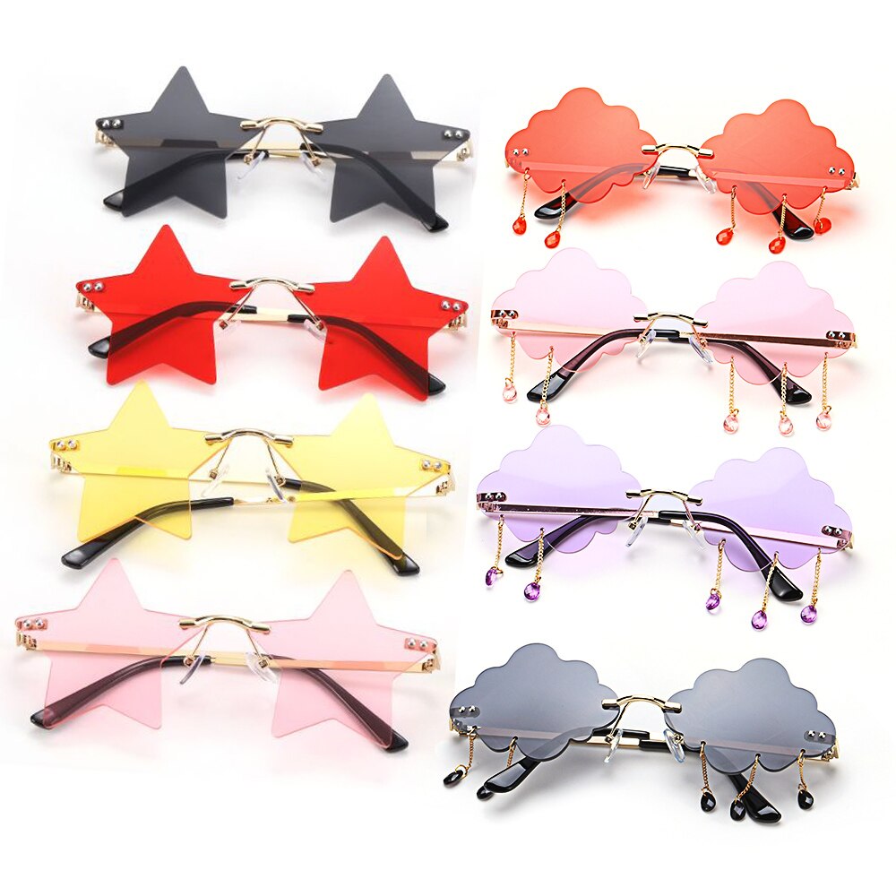 Забавные очки в форме облаков и звезд, модные солнцезащитные очки с кисточками, солнцезащитные очки без оправы в стиле ретро, солнцезащитные очки в стиле стимпанк, UV400