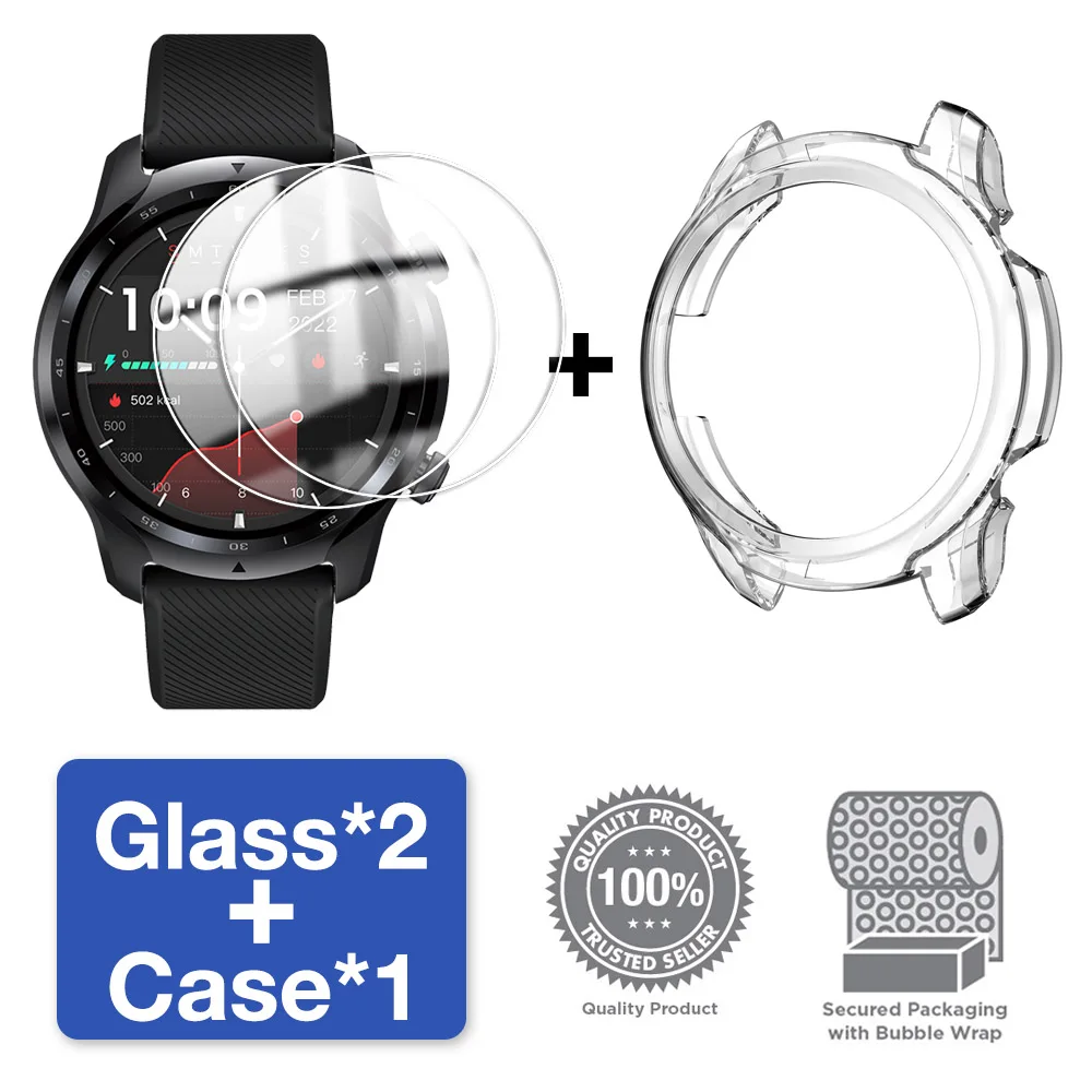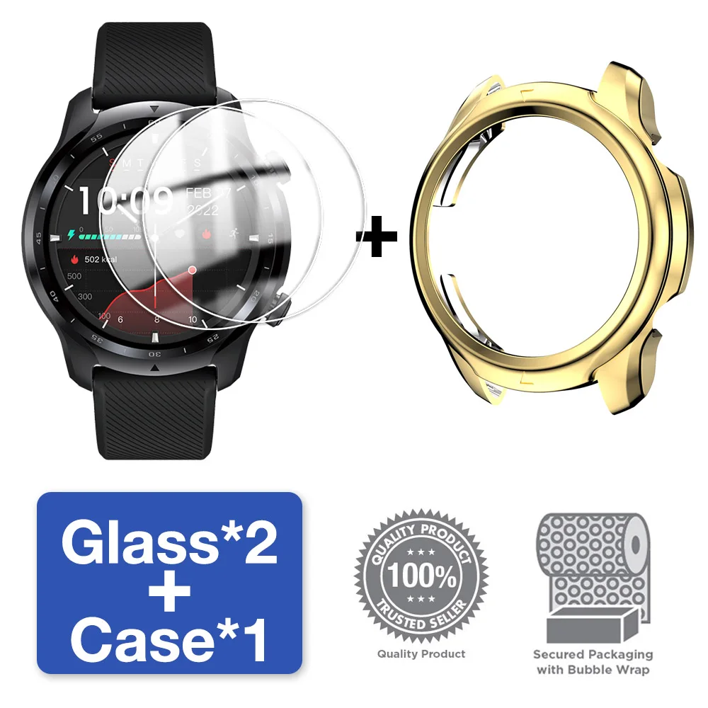 2-IN-1 Case + Tempered Glass for Ticwatch Pro 3 Ultra-HD Screen Protector Glass Film & Bumper Protective Cover Accessorie