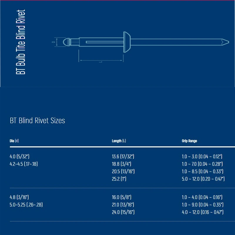 Заклёпки лампы Tite имеют Три сложенных ножки на слепой стороне. Эта специальная конструкция обеспечивает высокую нагрузку на зажим и идеально подходит для крепления мягких материалов.