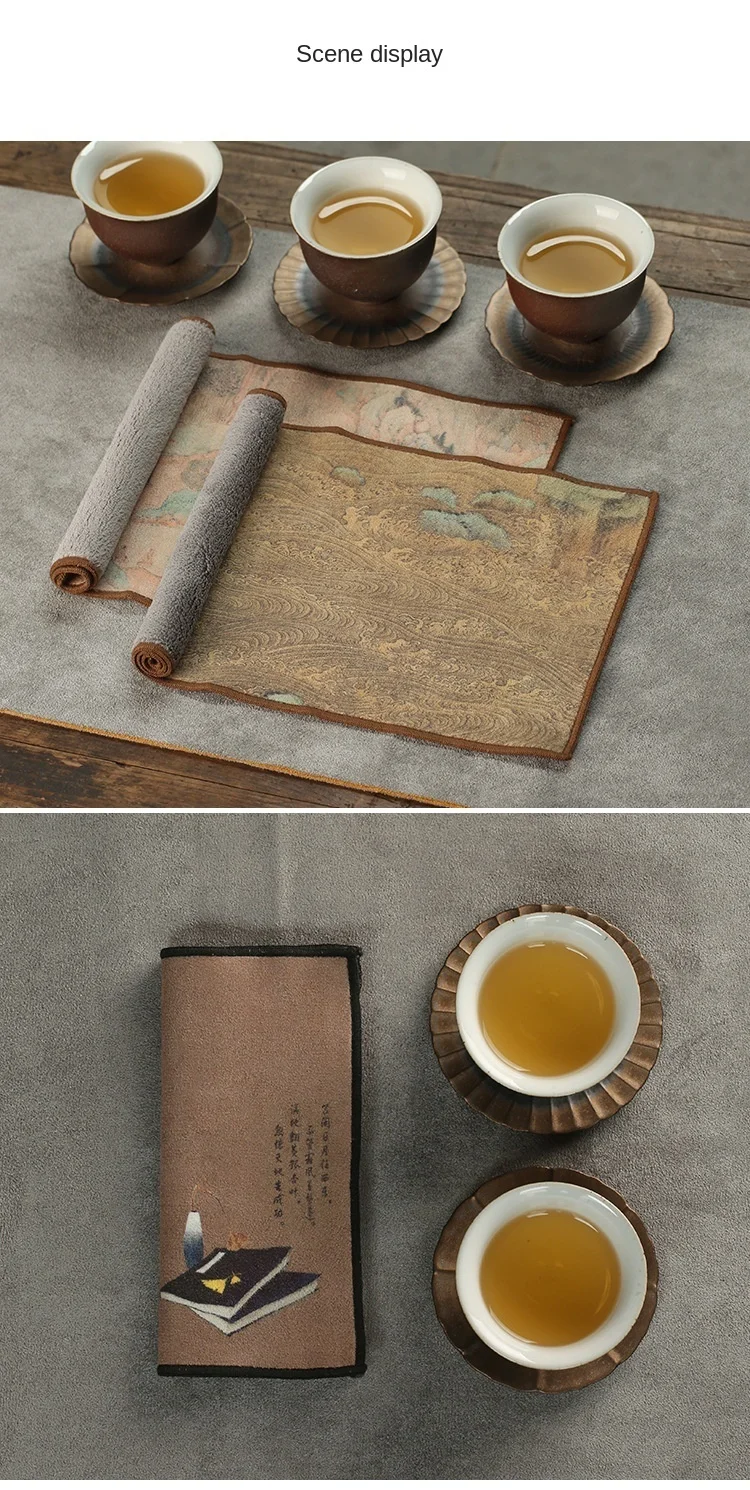 Замшевое чайное полотенце, бытовая дзен чайная скатерть, высококачественный абсорбирующий глиняный чайный коврик, чайная салфетка кунг-фу, чайные аксессуары