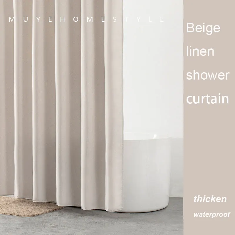 Утолщенная серая имитация льняной занавески для душа водонепроницаемые шторы для ванной комнаты роскошные шторы для ванной комнаты с крючками