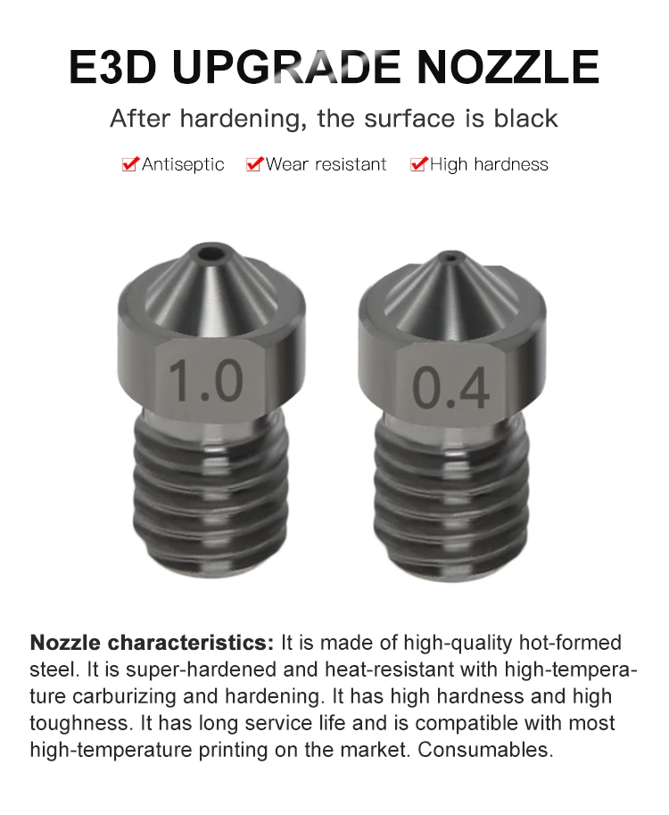 Запчасти для 3D-принтера Reprap MK8, сопло из закаленной стали E3D, сопло 1,75 мм 0,4/0,6/0,8 мм для MK8 Ender 3 CR10 CR10S Hotend, комплект 1/2 шт.