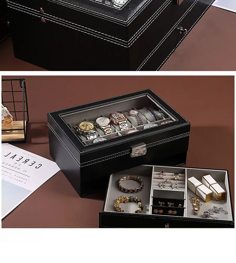Запираемый ящик для хранения часов из искусственной кожи с 12 отделениями, мужской и женский ящик для демонстрации ювелирных изделий, 2-уровневый органайзер, витрина для часов