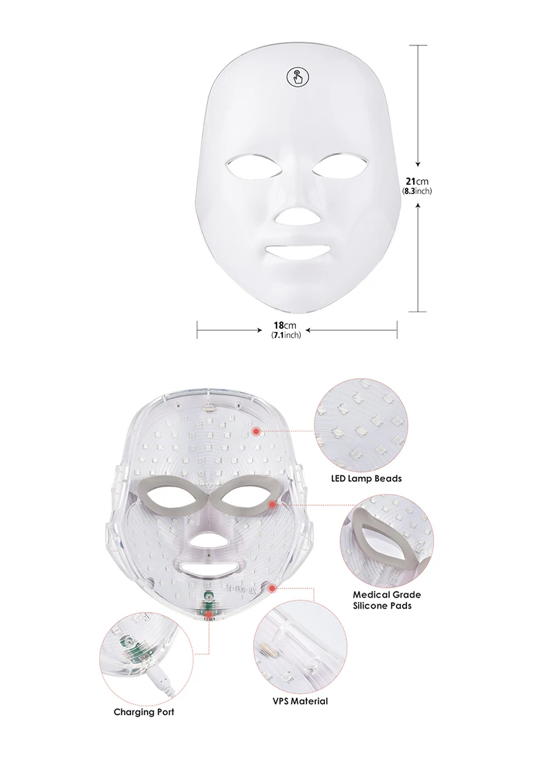 7 цветов Светодиодная маска для лица маска для красоты фотонный Свет Омоложение кожи анти-акне терапия удаление морщин уход за кожей маска для лица