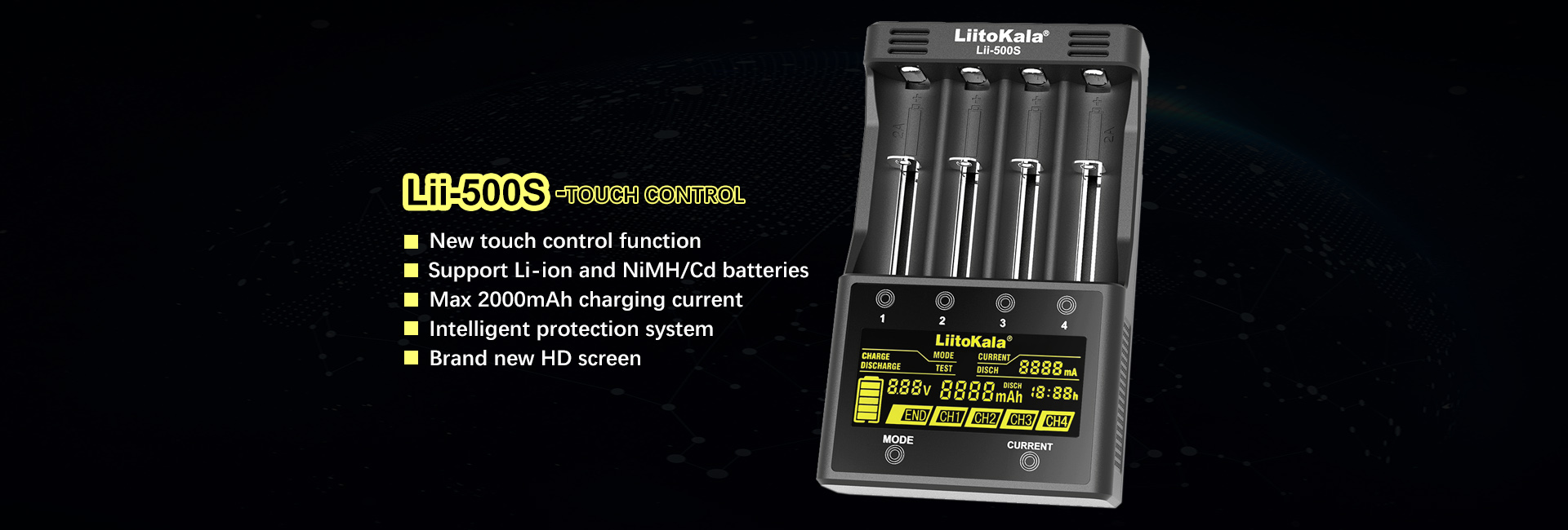 Li-Ion 26650, 22650, 18650,18490, 18500,17500, 17355, 16340 (RCR123), 14 500, 10440