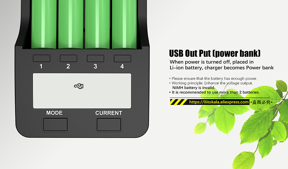3. Выходной ток (опционально): Li-Ion/IMR/LiFePO4: 2000 мА * 1 (только один)/1000 мА * 2/500 мА * 2