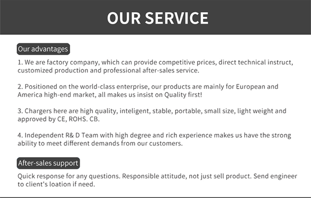 Охлаждение: в зарядных устройствах используется система принудительного воздушного охлаждения. В условиях отсутствия пыли и вентиляции температура при полной нагрузке повышается не более 40 ℃.