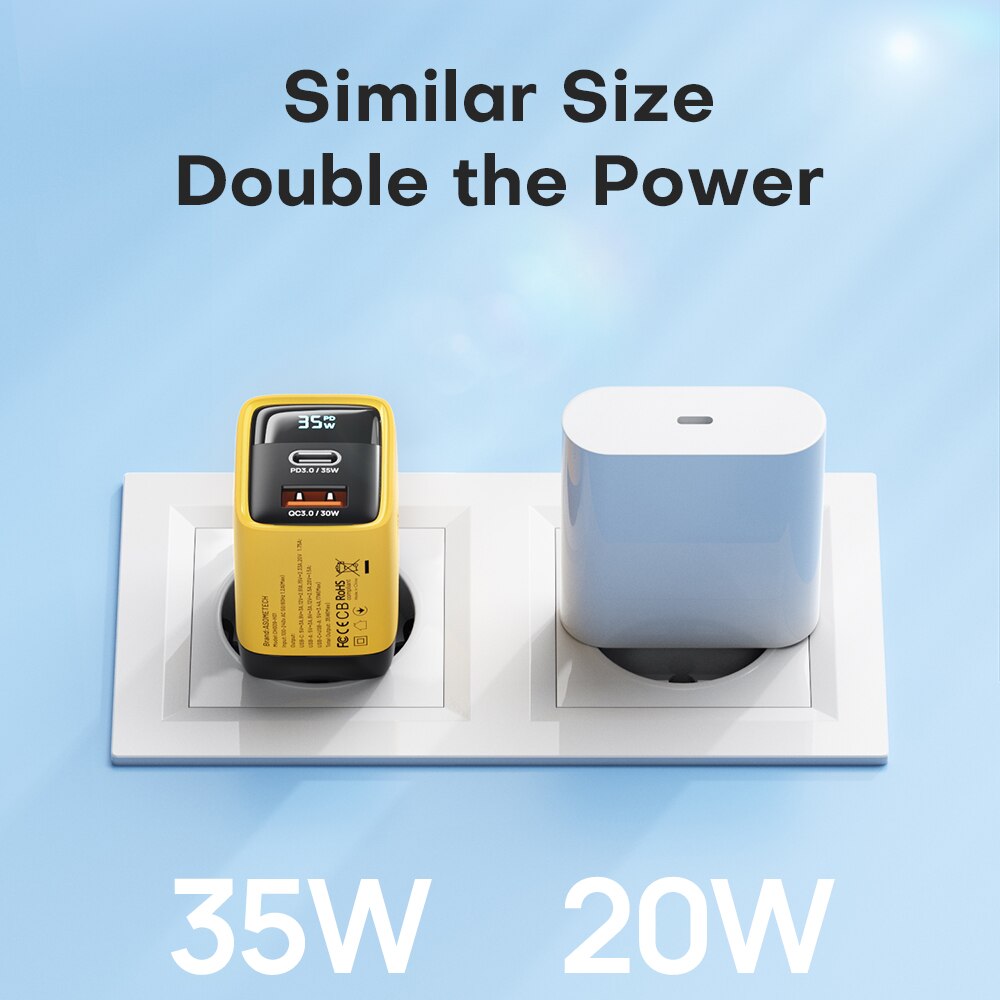 ⚡Usb-c1 + USB-A выход: 5v3.4a, 17 Вт (макс.)?【Максимальная Быстрая зарядка GaN 35 Вт 】: только порт C поддерживает быструю зарядку PD мощностью до 35 Вт и быструю зарядку 33 Вт PPS, а только порт A поддерживает быструю зарядку QC3.0 мощностью до 30 Вт.