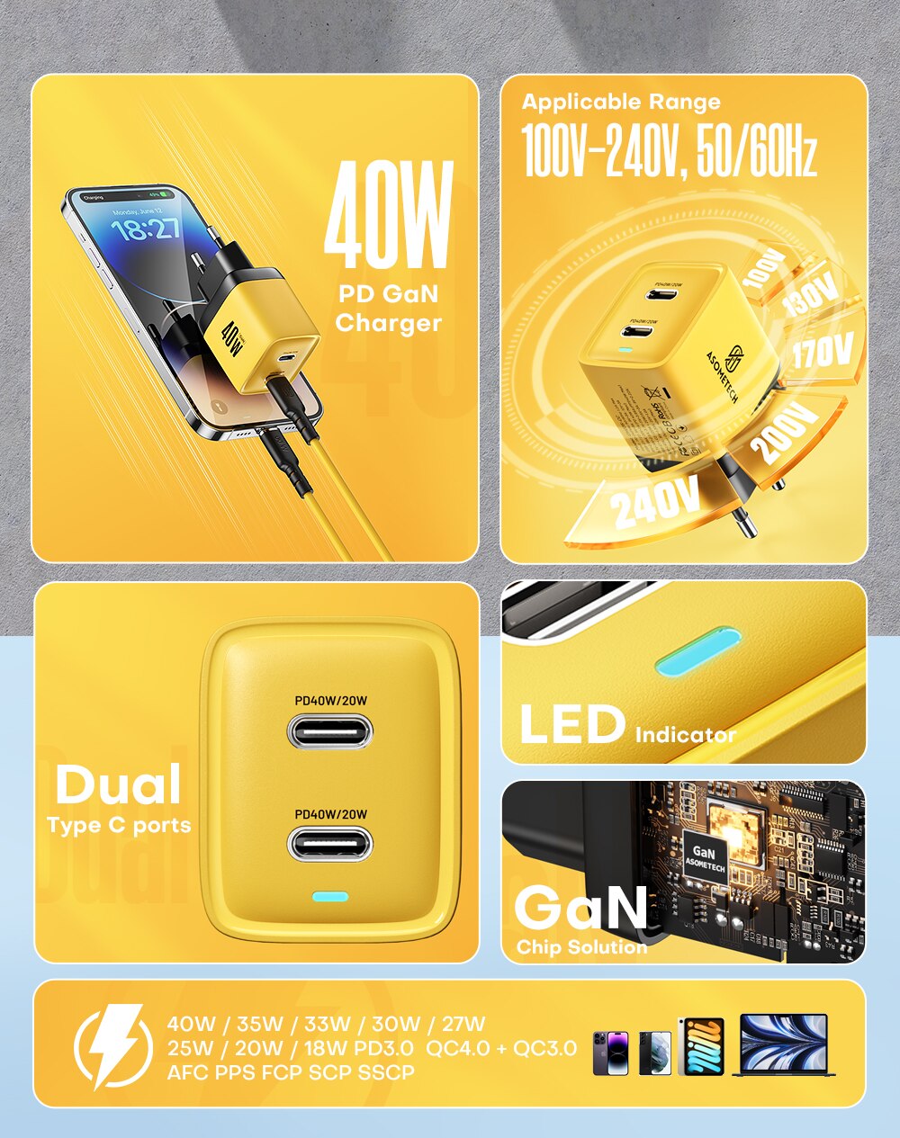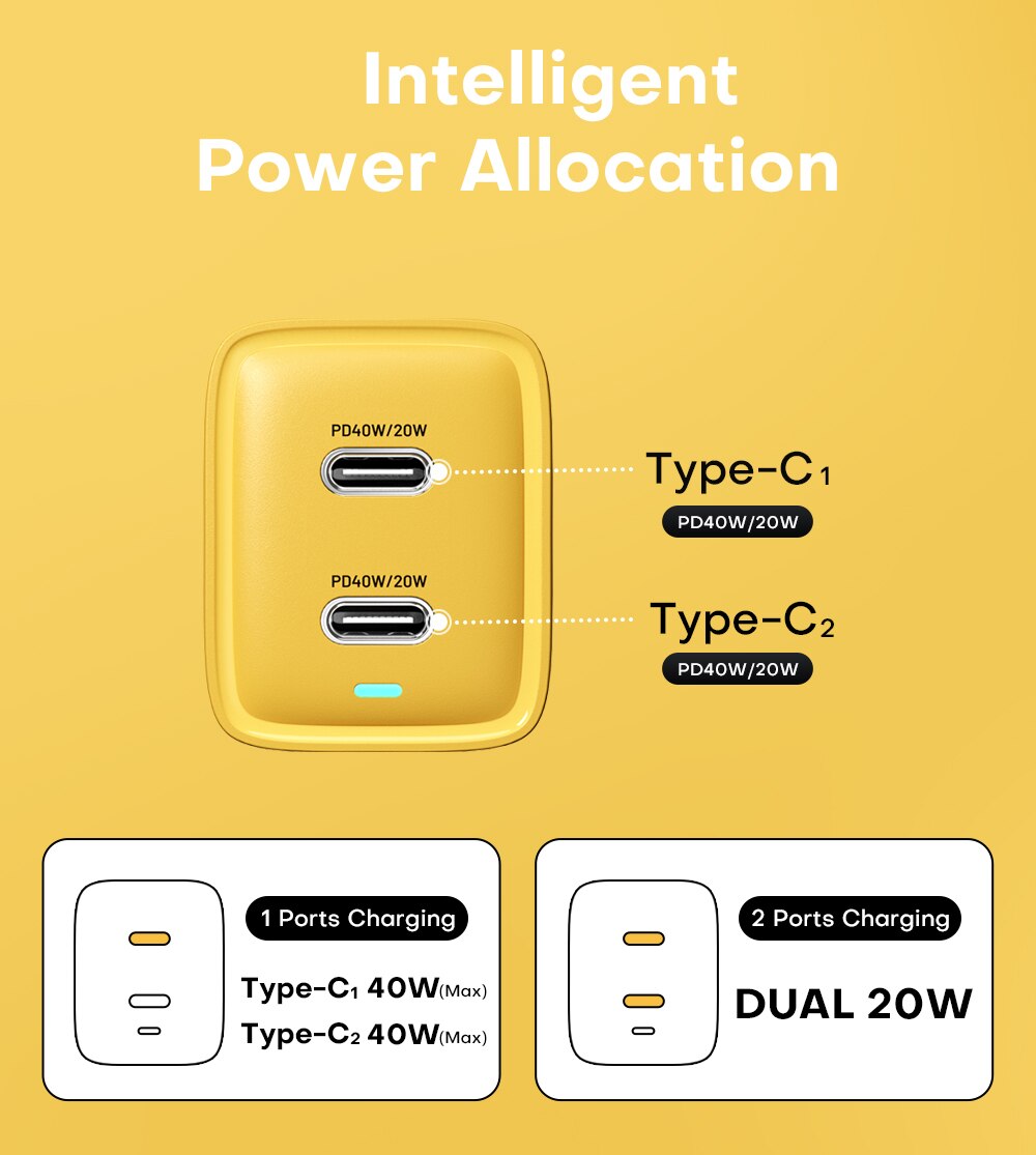 • Высокая выходная мощность :При максимальной выходной мощности 40 Вт это зарядное устройство может работать даже с самыми энергоемкими устройствами, такими как MacBook Pro.