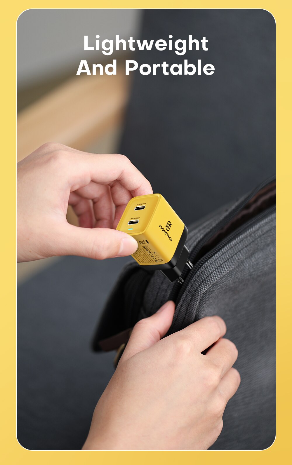 • Технология GaN :Зарядное устройство использует технологию GaN, что делает его меньше и эффективнее, чем традиционные зарядные устройства.
