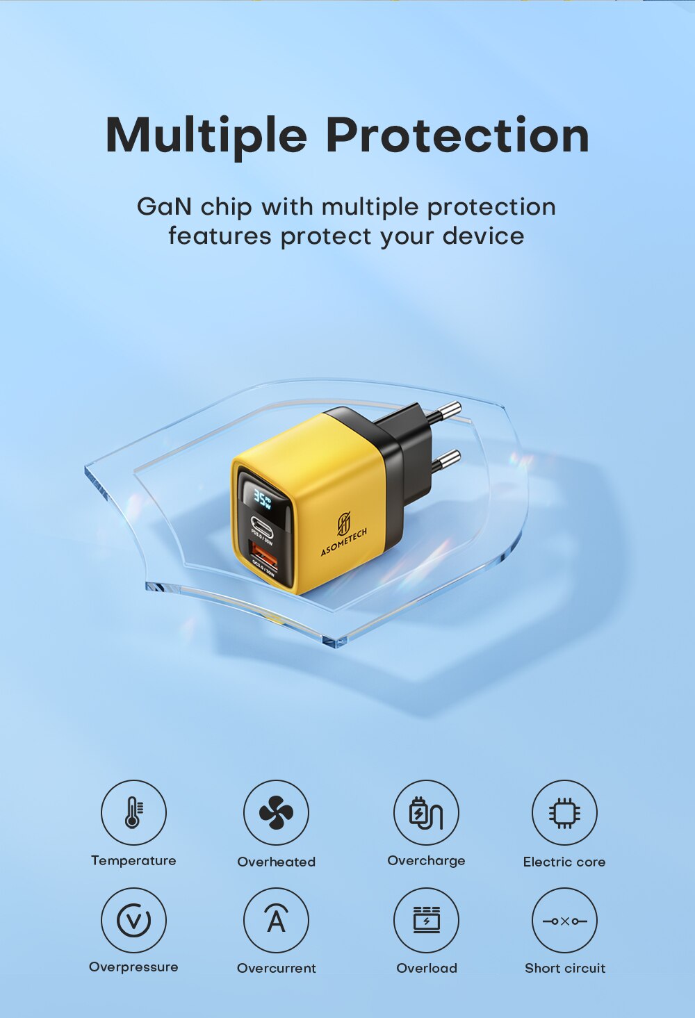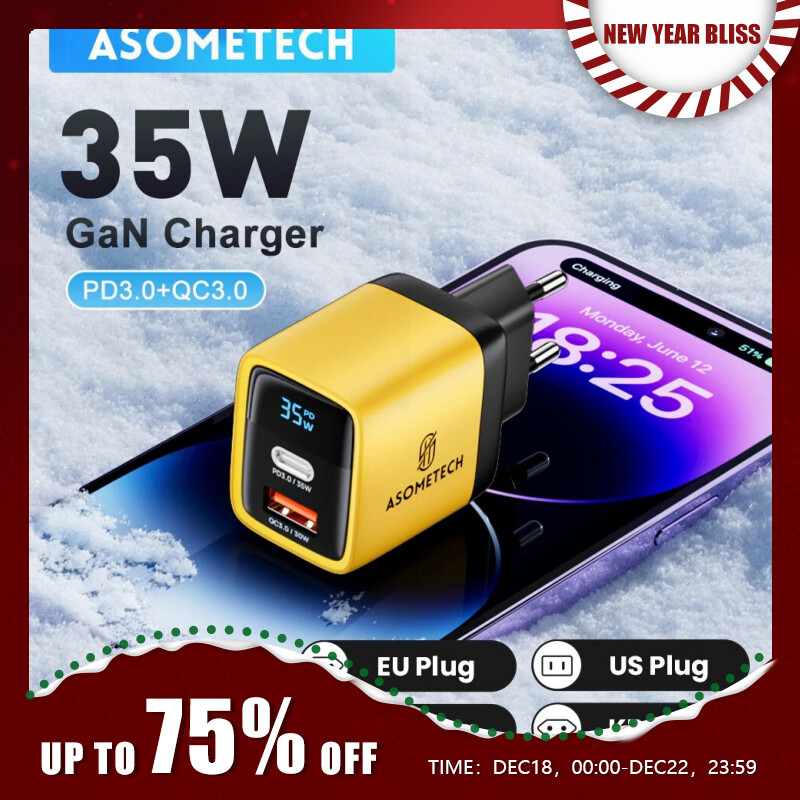 Зарядное устройство ASOMETECH со светодиодным дисплеем и поддержкой быстрой зарядки, 35 Вт
