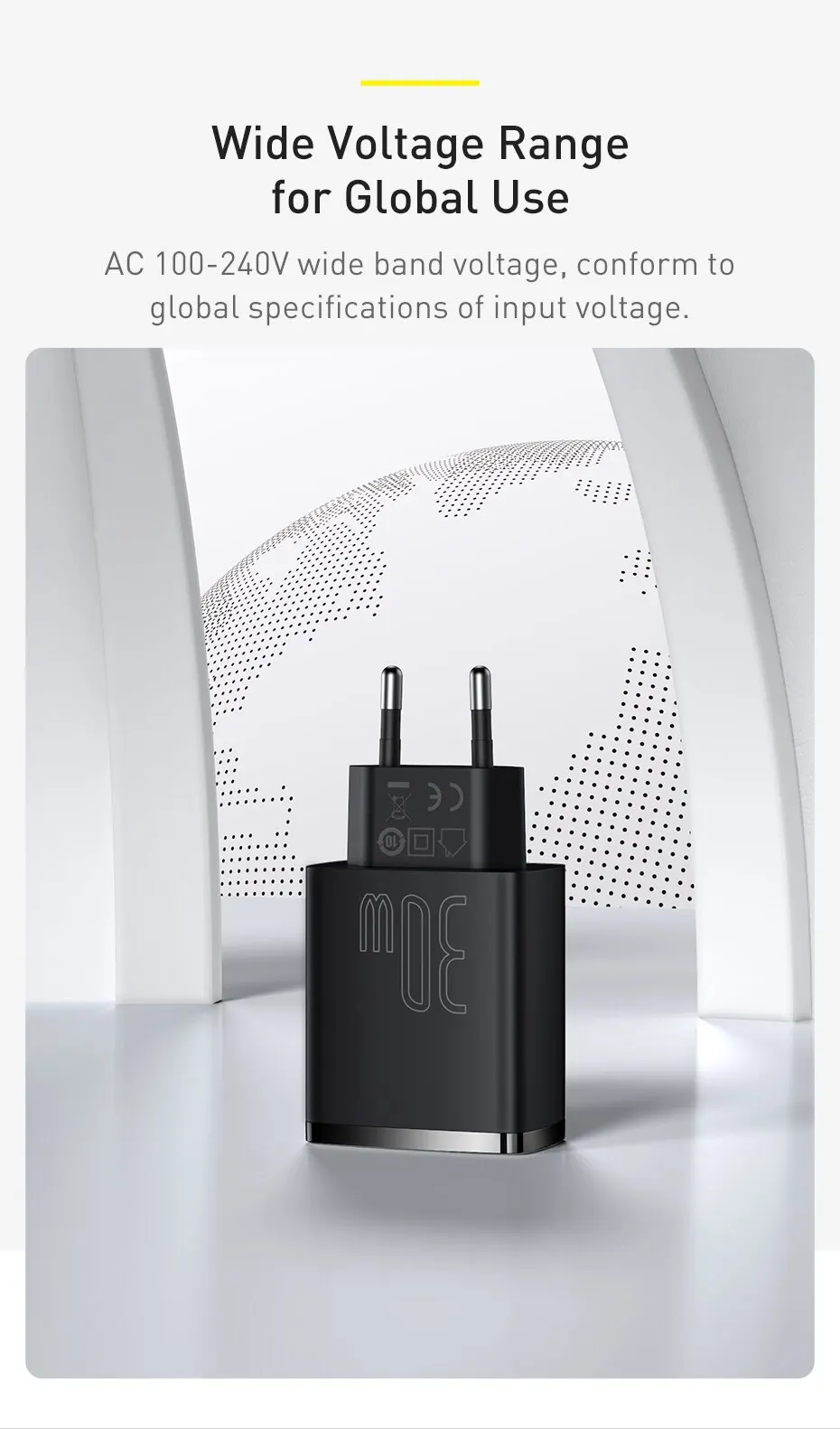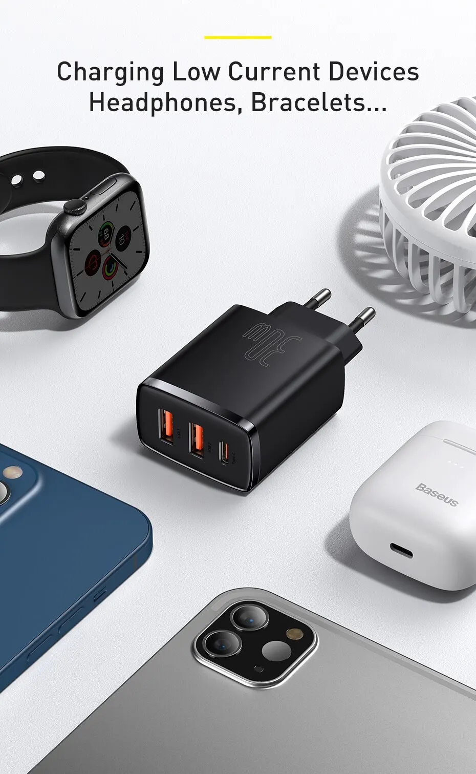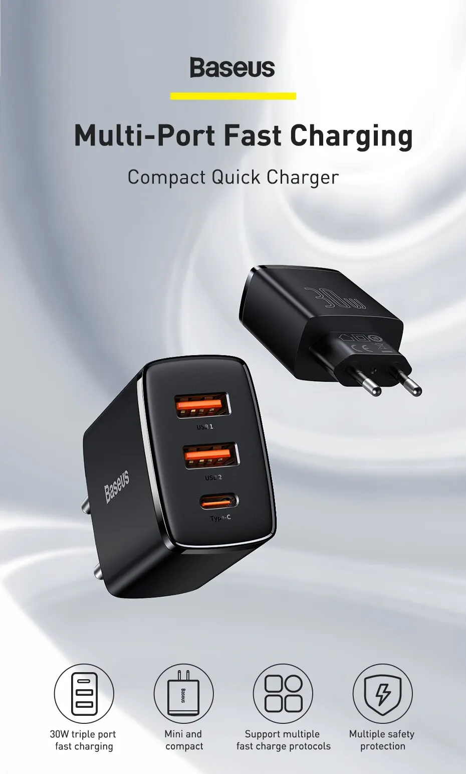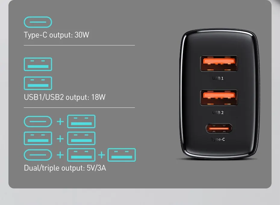 Быстрое зарядное устройство Baseus с тройными портами 30 Вт