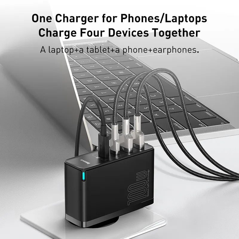 100W GaN зарядное устройство с 4 портами USB для быстрой зарядки