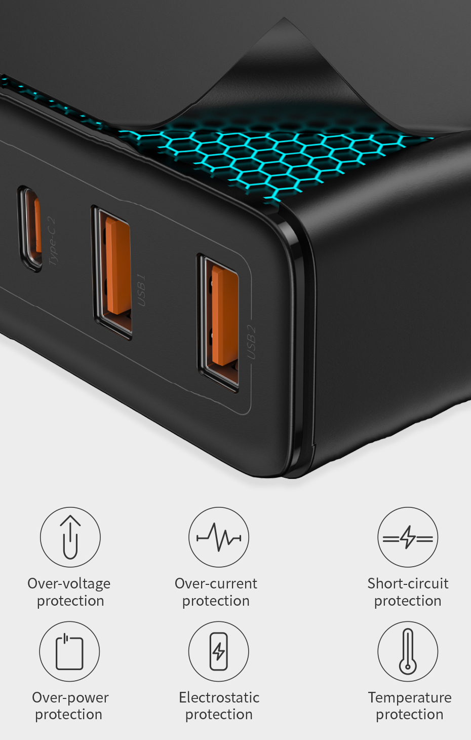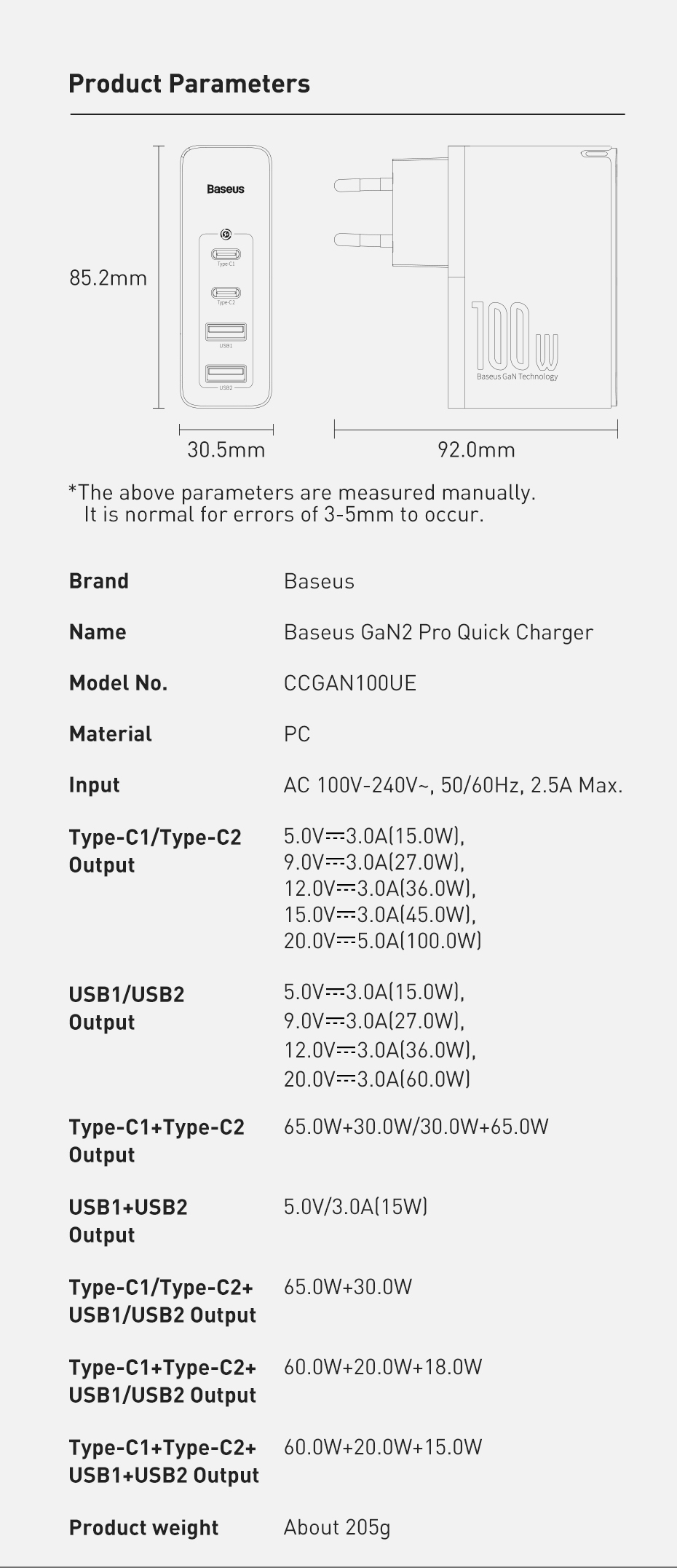 Type C 2 Output 5V/3A, 9V/3A, 12V/3A, 15V/3A, 20V/5A
