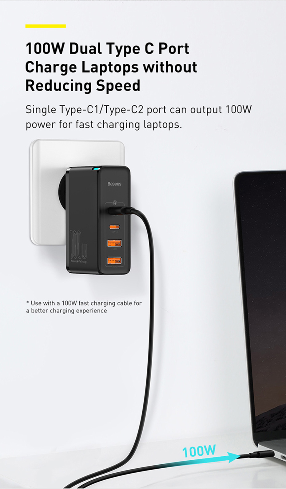 Один тип C 1 или один тип C 2 может достигать мощности до 100 Вт для быстрой зарядки ноутбука.Меньше, чем 61W однопортовые зарядные устройства