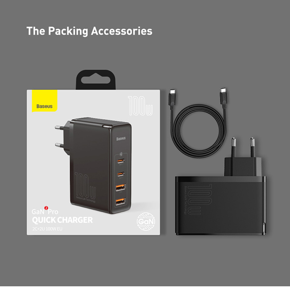 Зарядное устройство Baseus GaN, 100 Вт