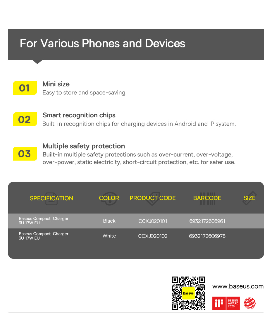 Зарядное устройство Baseus с USB-портами и поддержкой быстрой зарядки