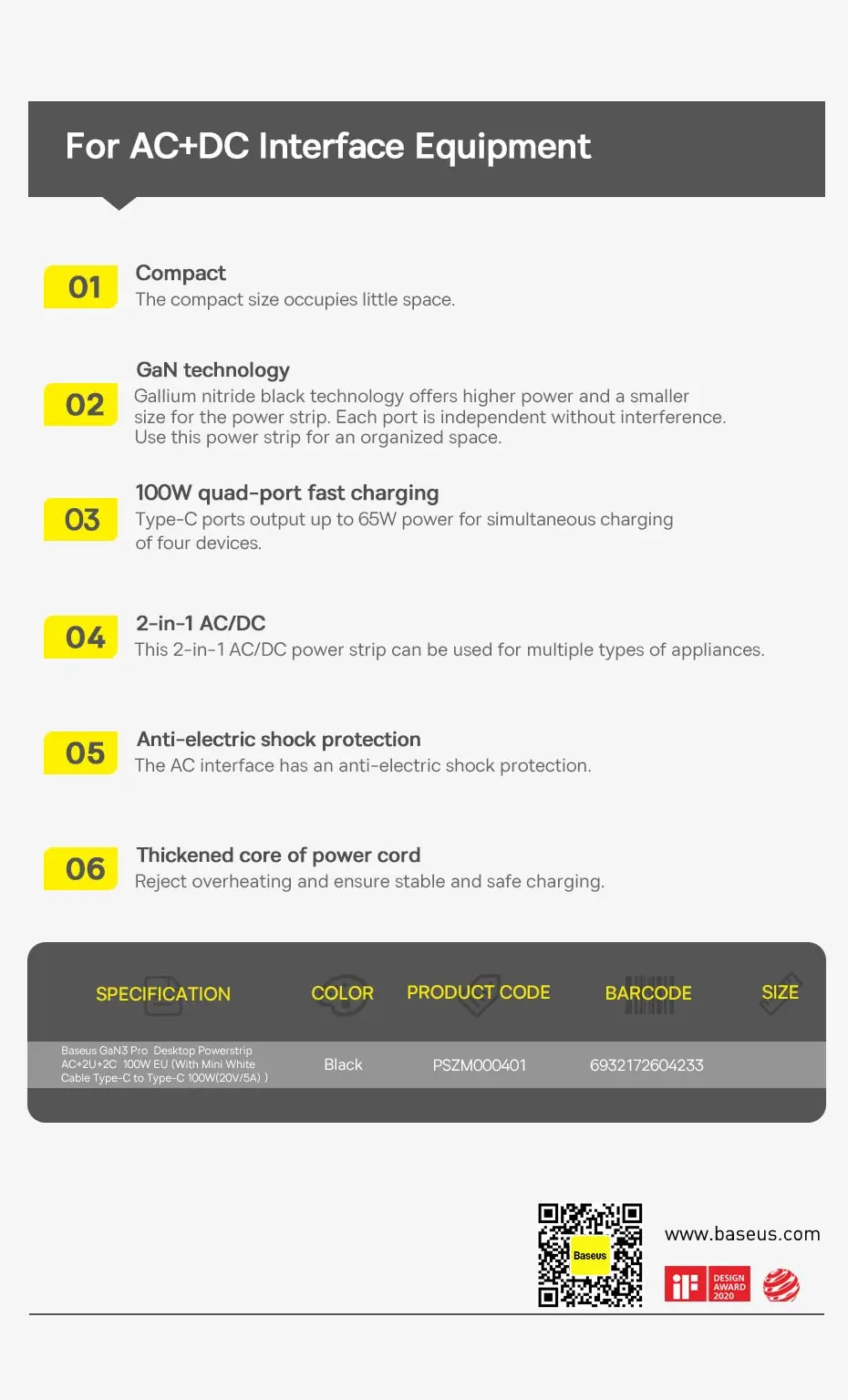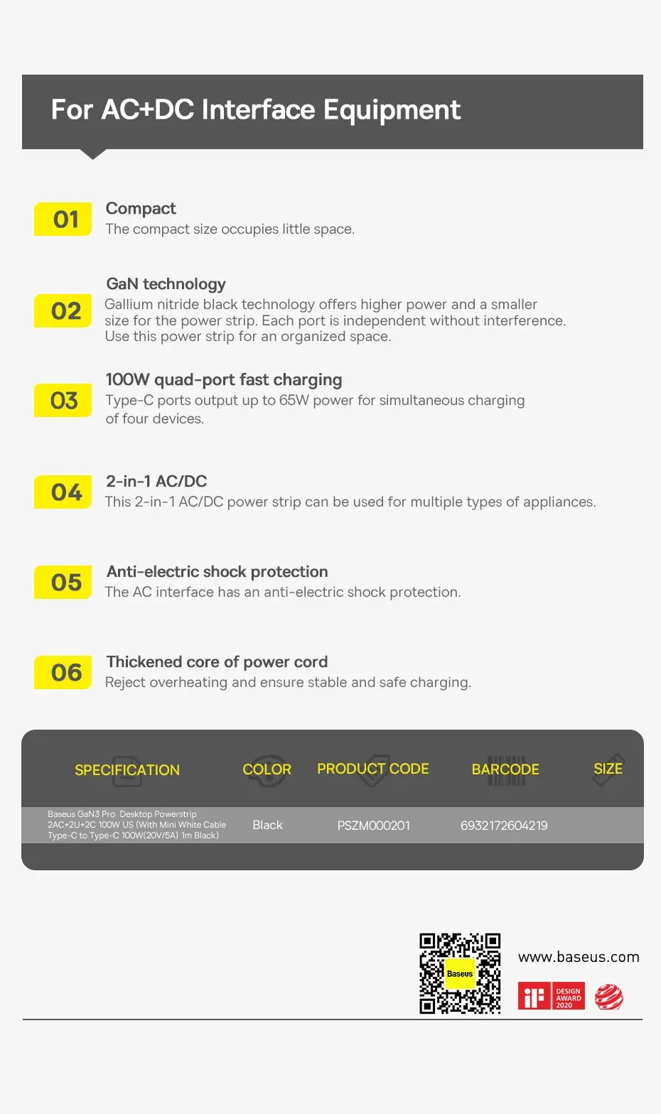 Baseus 100 Вт Мульти порты GaN3 про Настольный удлинитель