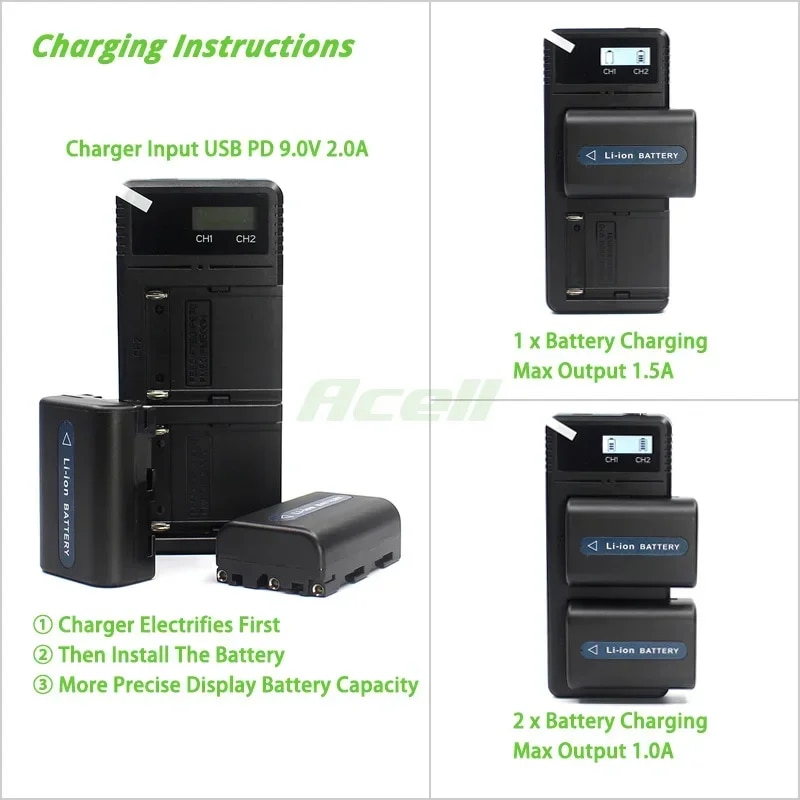 1 X быстрое Двухканальное зарядное устройство с ЖК-дисплеем