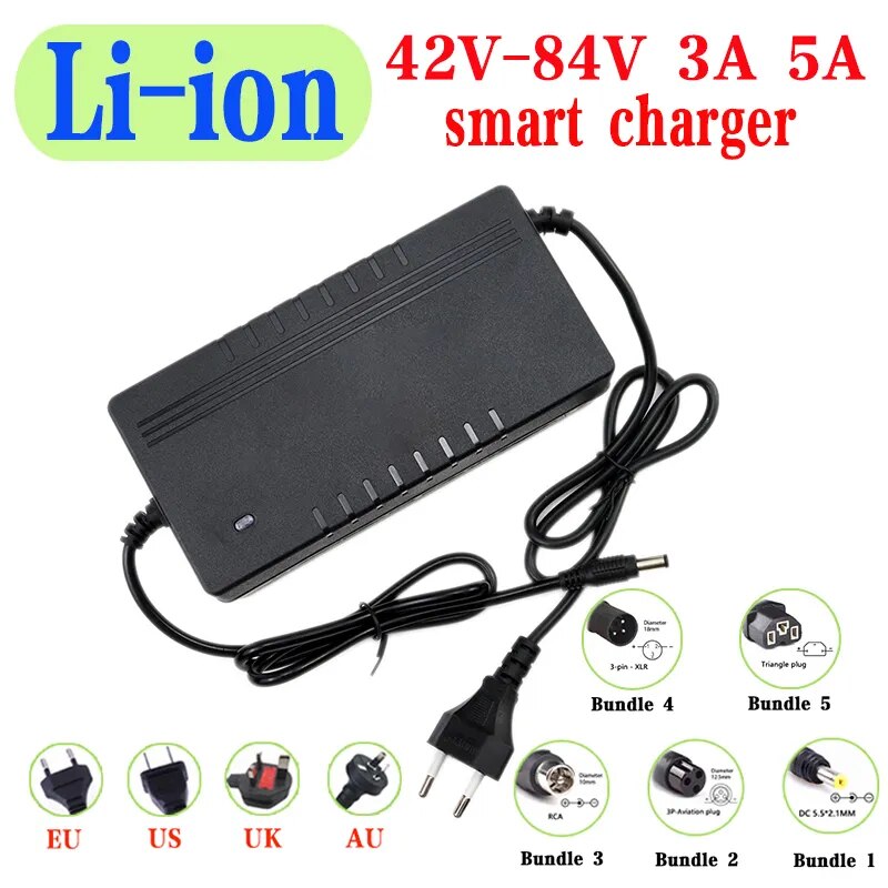 Зарядное устройство для 10S, 13S, 14S, 16S, 20S, 36 в 48 в 52 в 60 в 72 в 3a 5A, 42 в 54,6 в 58,8 в 67,2 в 84 в 3A 5A
