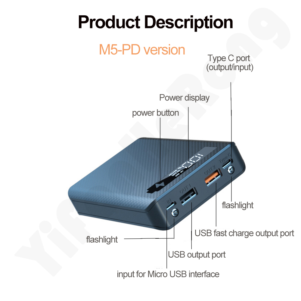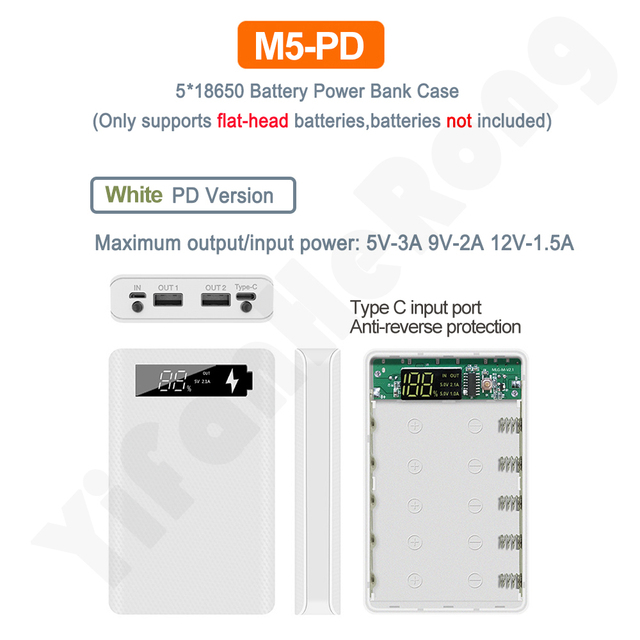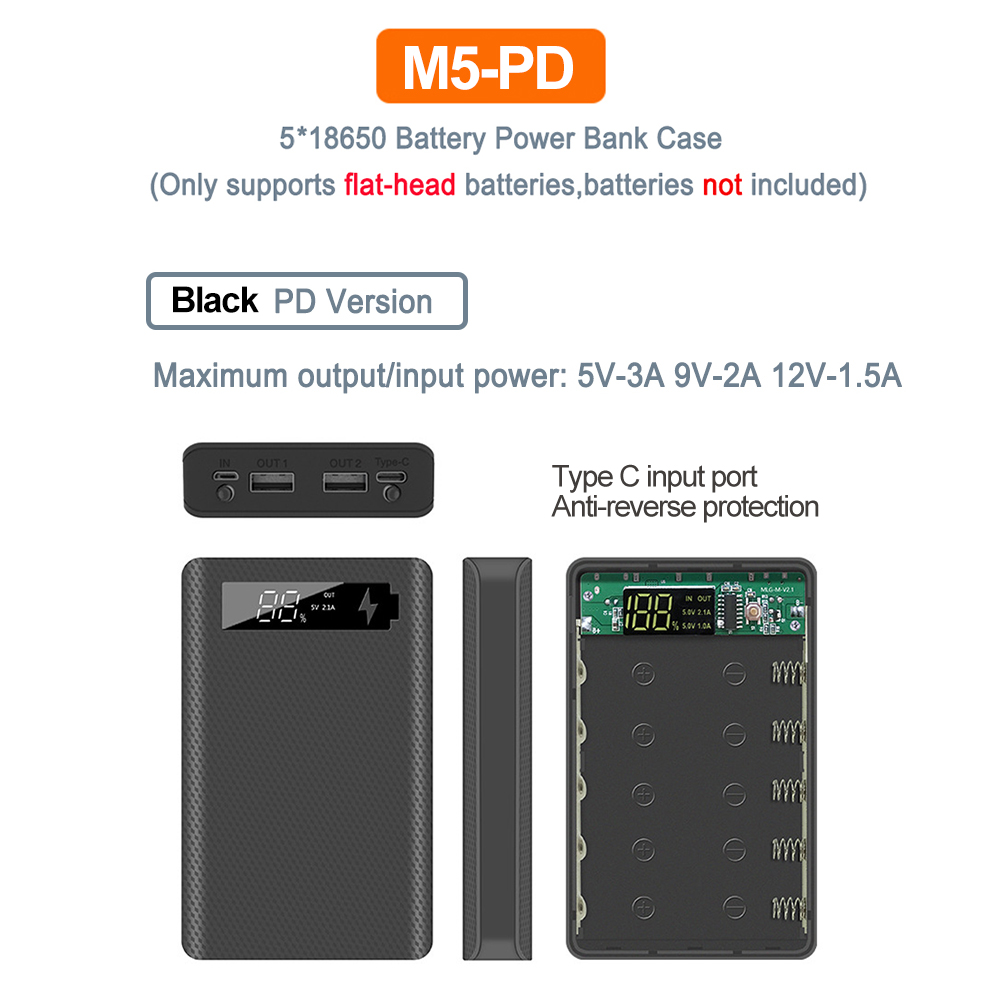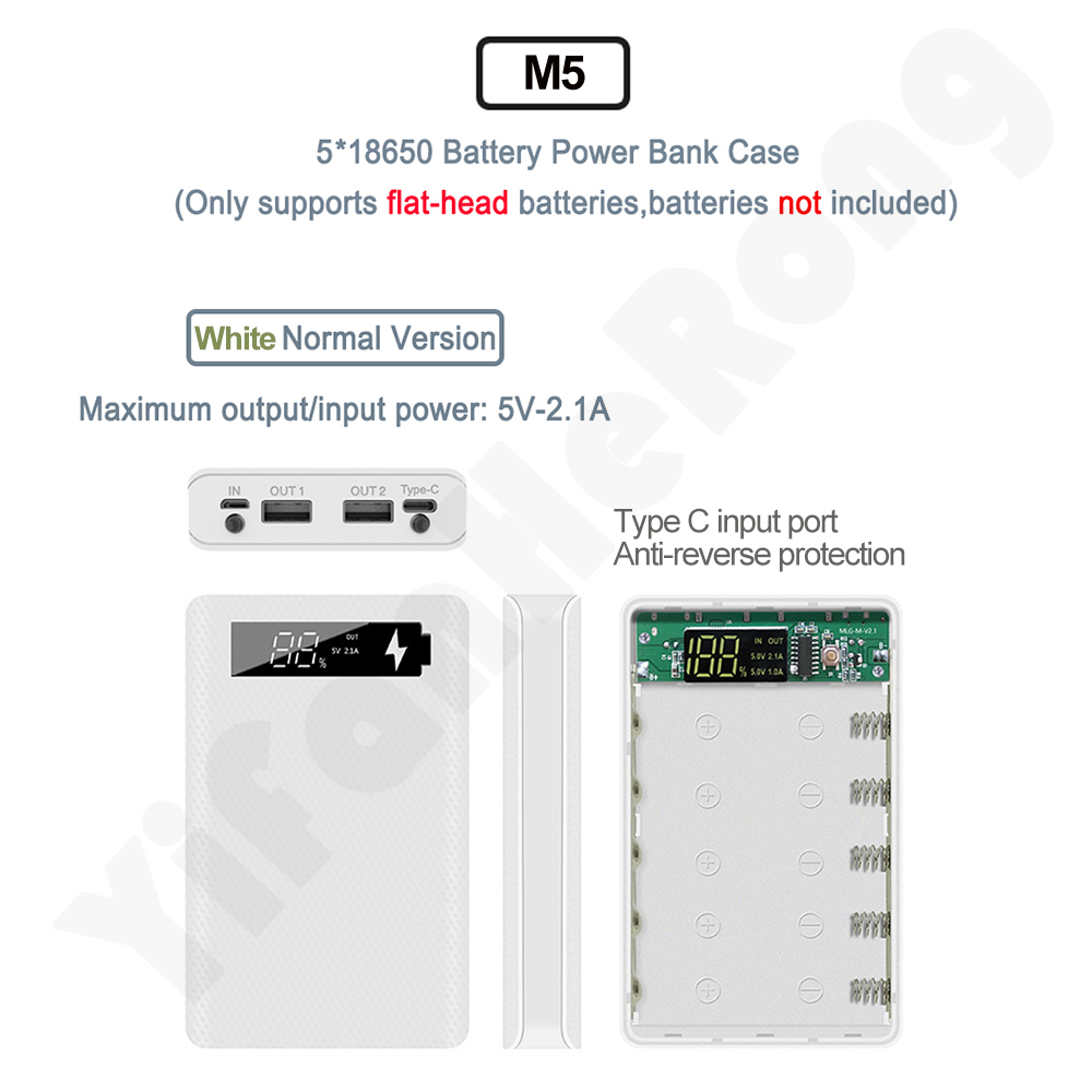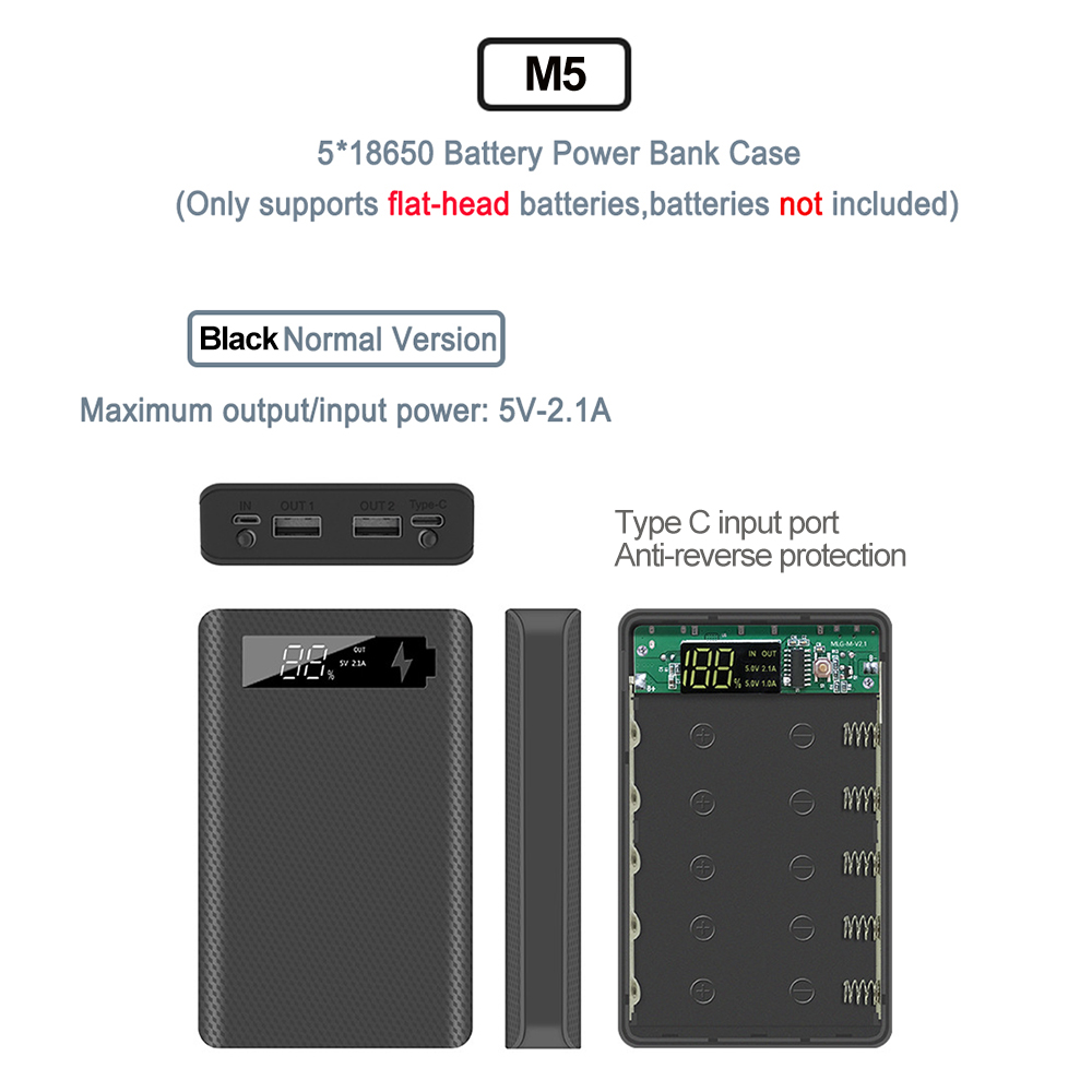 1. Функция: цифровой дисплей с питанием, съемный, без сварки, с защитой от обратного подключения, может заряжать 5 батарей с плоской головкой 18650, когда встроенный аккумулятор можно использовать как внешний аккумулятор.