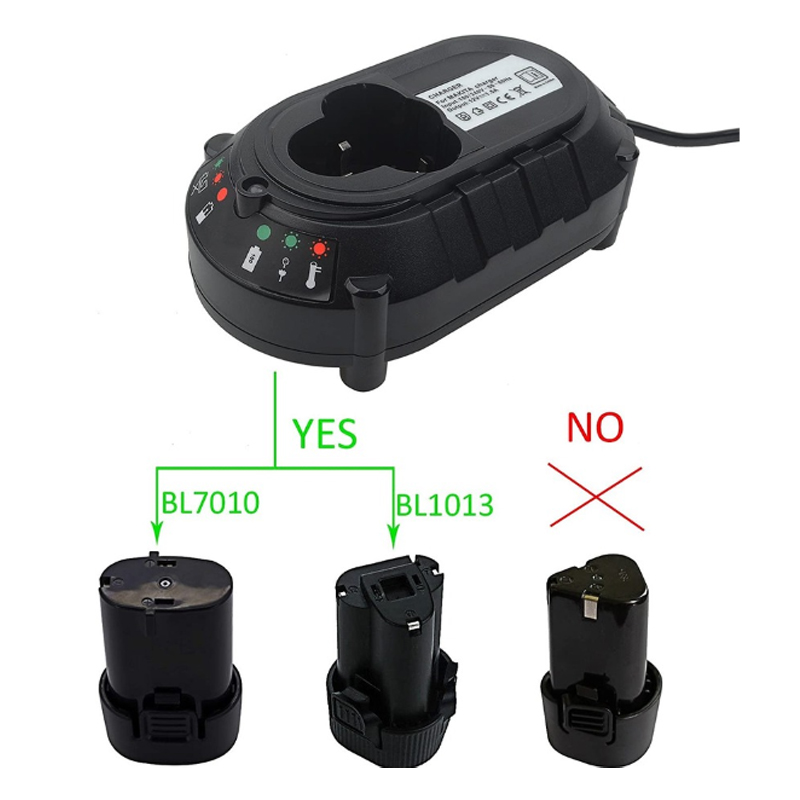 Это зарядное устройство совместимо с литий-ионным аккумулятором 7,2 В 10,8 В DC10WA BL1013 BL1014 BL7010 и другими аккумуляторами.