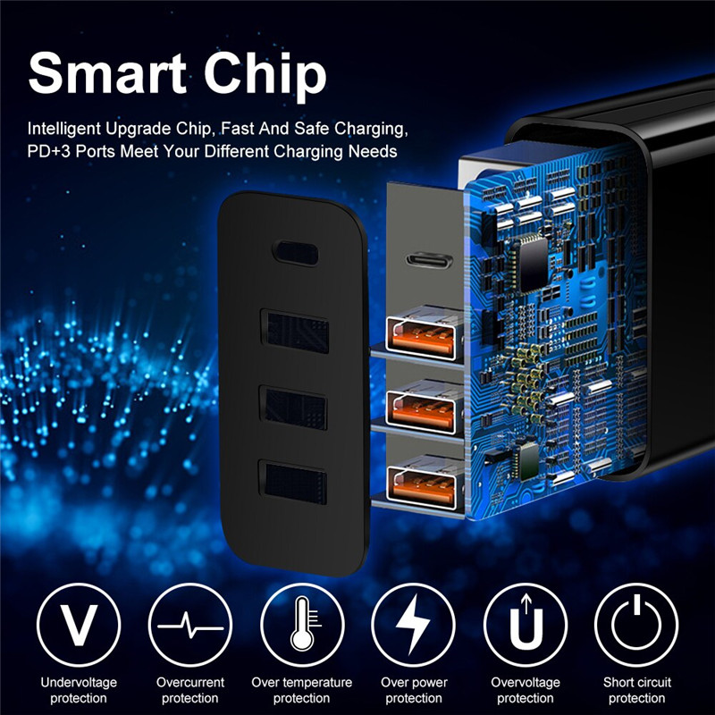 Этот продукт поддерживает зарядку Quick Charger 3,0, которая может быстро заряжать ваши электронные устройства во время прогулок или путешествий, экономя ваше время. Кроме того, этот продукт имеет интеллектуальный чип распознавания, который может разумно распределять зарядный ток, делая зарядку более безопасной.