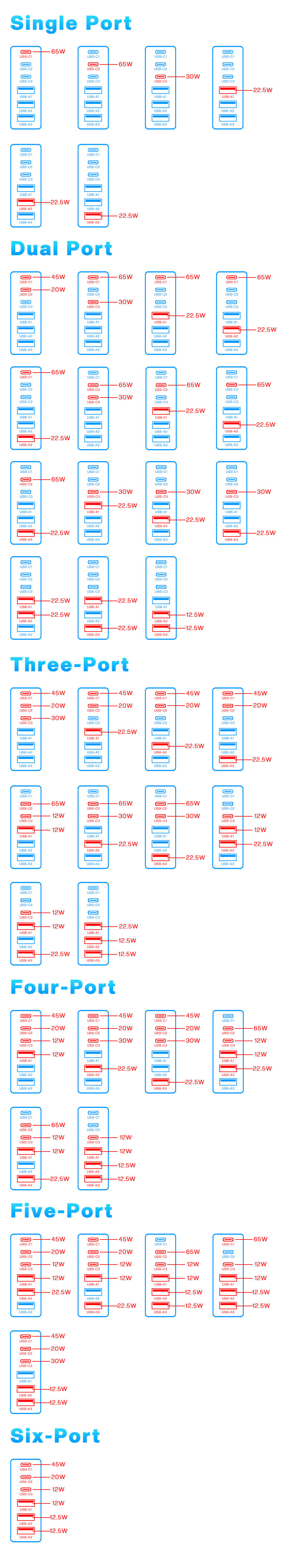 Smart 1 :USB C1 + C2 = 45W + 20W