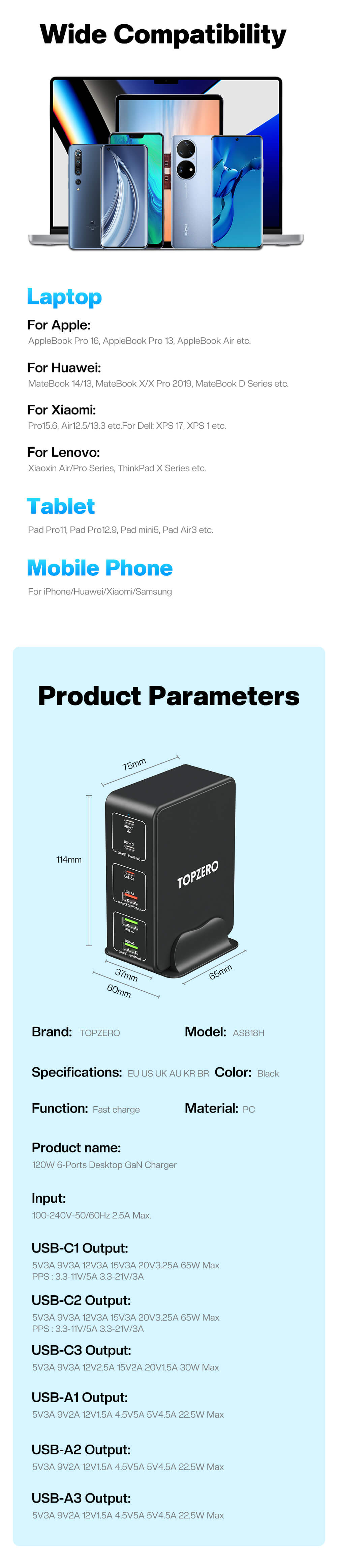 TOPZERO 120W Charger Supported Fast Charging Protocols :