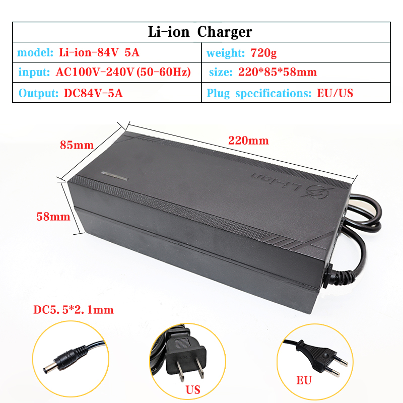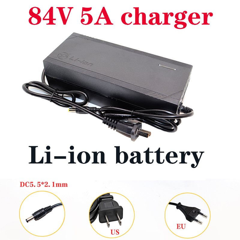 Зарядное устройство для литиевой батареи 84 В 5 А постоянного тока 5,5*2,1 мм подходит для литиевой батареи 20S 72 В переменного тока 110-220 В с вентилятором Европейская и американская вилка